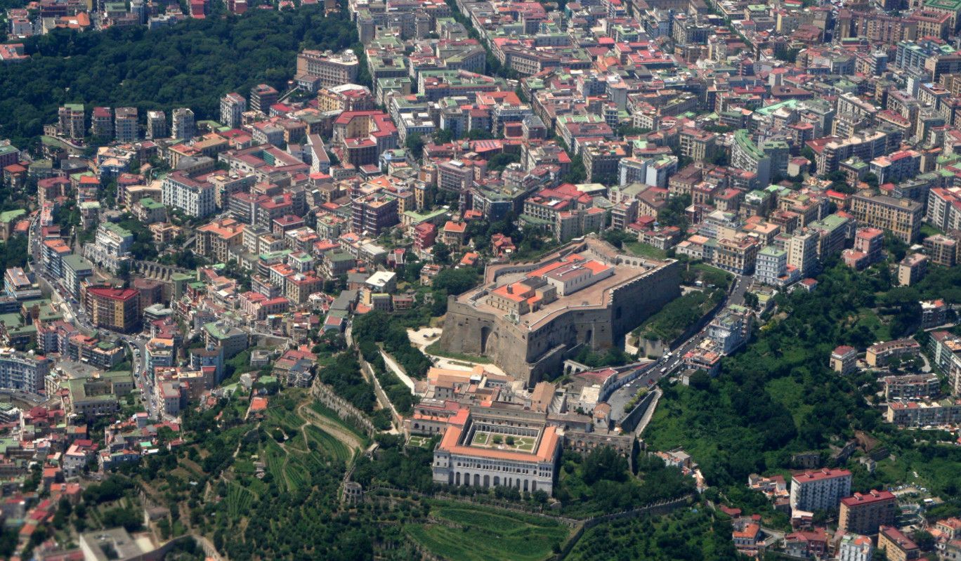 Первые упоминания о Castel Sant 'Elmo датированы 1275 годом. В 1329 Роберт Анжуйский доверил ее дальнейшее расширение Сиенскому архитектору и скульптору Тино ди Camaino, который в дальнейшем преобразует здание в настоящее сокровище для короля и двора. Четырехугольное сооружение с двумя башнями, в 1348 классифицирован как Castrum Sancti Erasmi, c часовней в честь Sant’Erasmo.