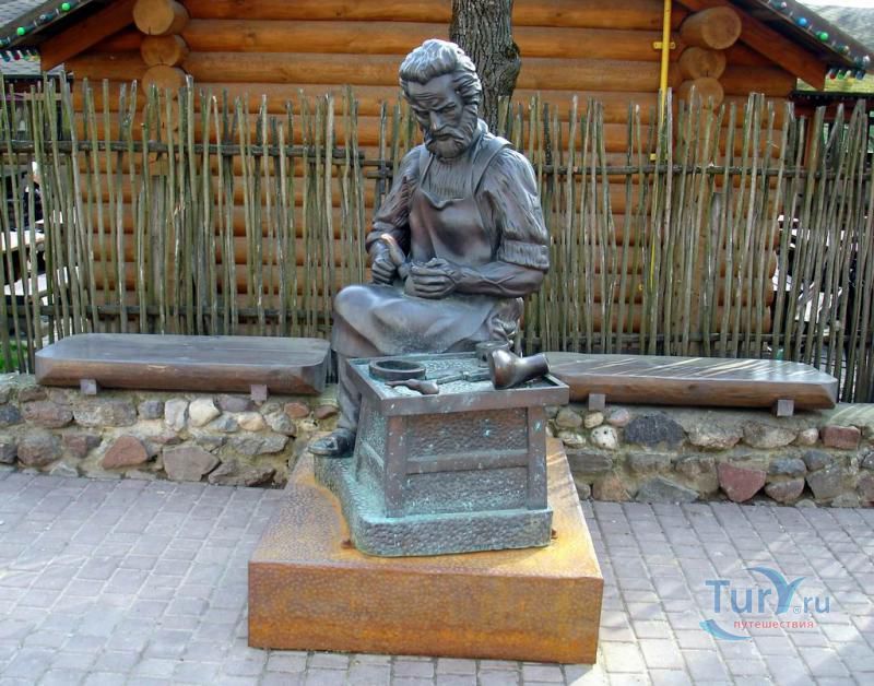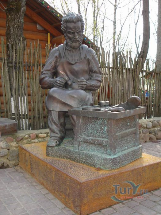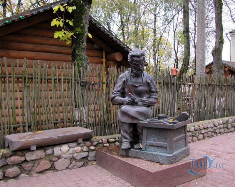 Скульптура, расположенная по улице Толстого, напротив обувного предприятия "Марко", не может не вызвать улыбку умиления. Вроде бы все ясно - сапожник без сапог. Но не все так просто. Скульптура - не собирательный образ безымянного сапожника, а посвящена она святому Криспину. Ему довелось жить во времена гонений на христиан при Диоклетиане и Максимиане. Криспин был наследником благородного рода III столетия, но беззаботная жизнь перестала удовлетворять его духовным потребностям. Вместе со своим братом Криспинианом Криспин решил посвятить себя тем неприкаянным язычникам, которые ещё не знали Иисуса Христа и жили северо-восточнее Лютеции (сейчас Париж). Оставив свои благородные привычки, и не пожелав наследовать богатое достояние, братья удалились в Суассон. Там выучившись профессии башмачника, принялись за столь низкий для благородных кровей труд. Но у братьев были еще и иные цели: привести к Христу как можно больше людей. Вскоре их профессиональная деятельность стала приносить материальные плоды и достаток. Но вместо того, чтобы довольствоваться новой жизнью, они стали всё лишнее отдавать неимущим, предлагая им бесплатную обувь, объясняя столь необычное поведение тем, что этого от них хочет Господь. Таким способом, они проповедовали Христианство язычникам. Кому-то эта деятельность оказалась ненавистной и на братьев донесли. После допросов и пыток (им загоняли под ногти шила, обливали кипящим оловом, окатывали кипятком и ледяной водой) братья не отказались от своей Веры. В 287 году братьев казнили. По одним данным их сварили в расплавленном олове, по другим - обезглавили. Бытует еще версия, что братья крали кожу, чтобы бесплатно делать бедным обувь, в следствии чего благодеяния, оказываемые кому-либо на счёт других, называются криспинадами (crispinades). Католическая церковь отнесла Криспина и Криспиниана к лику святых. Их мощи почивают в Риме, в храме святого архидиакона Лаврентия, а 25 октября отмечают день памяти Святых.