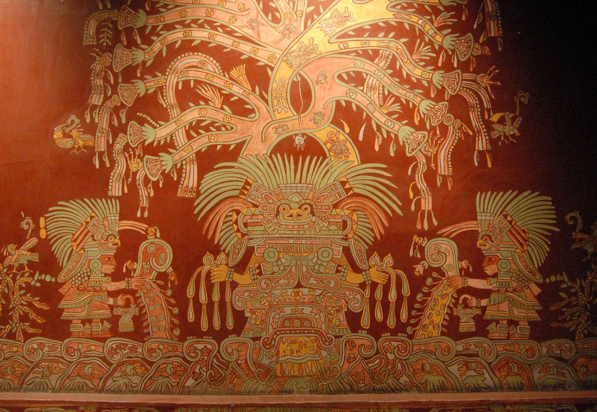 Теотиуакан (Теотихуакан, "место, где рождаются боги") находится в 50 км. к северо-востоку от Мехико-Сити, и представляет собой культовое место многих народов "мезоамерики". Происхождение этого удивительного города связано с цивилизацией гораздо более древней, чем ацтекская. Первые поселения были основаны в этих местах еще в V веке до н. э., а в V столетии н. э. Теотиуакан являлся крупнейшим городом Центральной Америки. Здесь на площади в 21 км обитало примерно 100 000 жителей, а по некоторым оценкам, даже вдвое больше. Его архитектурные памятники потрясают воображение. Храм Кетцалькоатля и 5-километровая Дорога мертвых (40 м. шириной), пирамиды Солнца и Луны, дворец Кетцаль-Папалотля и дворец Ягуаров, древний Храм Пернатых Раковин, дворец Бабочек Кецаль, площадь Пласа-де-ла-Луна и жилой комплекс Тепантитла с знаменитыми фресками Парадайз оф Тлалок - вот только малая часть местных "сокровищ истории", собранных из огромных каменных блоков и строго подчиненных какой-то неведомой системе. Многое в прошлом Теотиуакана все еще остается загадкой для исследователей. Кое-что изрядно пострадало от неумелой работы первых археологов, в особенности пирамида Солнца. Ее раскопки, как и последующая реконструкция, проводились в начале XX века без должной компетентности. По сегодняшним предположениям, высота ее составляла 65 метров, в нее было уложено 765 000 кубометров строительного материала (земли и камней, а также адобов - высушенного на солнце кирпича-сырца). Судя по всему, пирамида завершалась плоской крышей, на которой стоял храм. Люди этой культуры поклонялись богу Дождя - Тальоку и обожествляли ягуаров. Занимались они по преимуществу земледелием. Важную роль в их хозяйственной жизни играли месторождения обсидиана, которыми богаты окрестности, и производство знаменитой местной керамики оранжевого цвета, - и то и другое было предметом весьма активного и широкого экспорта. Мы до сих пор точно не знаем, что положило конец существованию Теотиуакана. Ясно только, что это был насильственный конец - город в VIII веке н. э. был разграблен и сожжен в результате вражеского нашествия (по некоторым версиям - тольтеков). В центре археологической зоны находится прекрасный музей с экспозицией редчайших археологических предметов и масштабной моделью Теотиуакана.