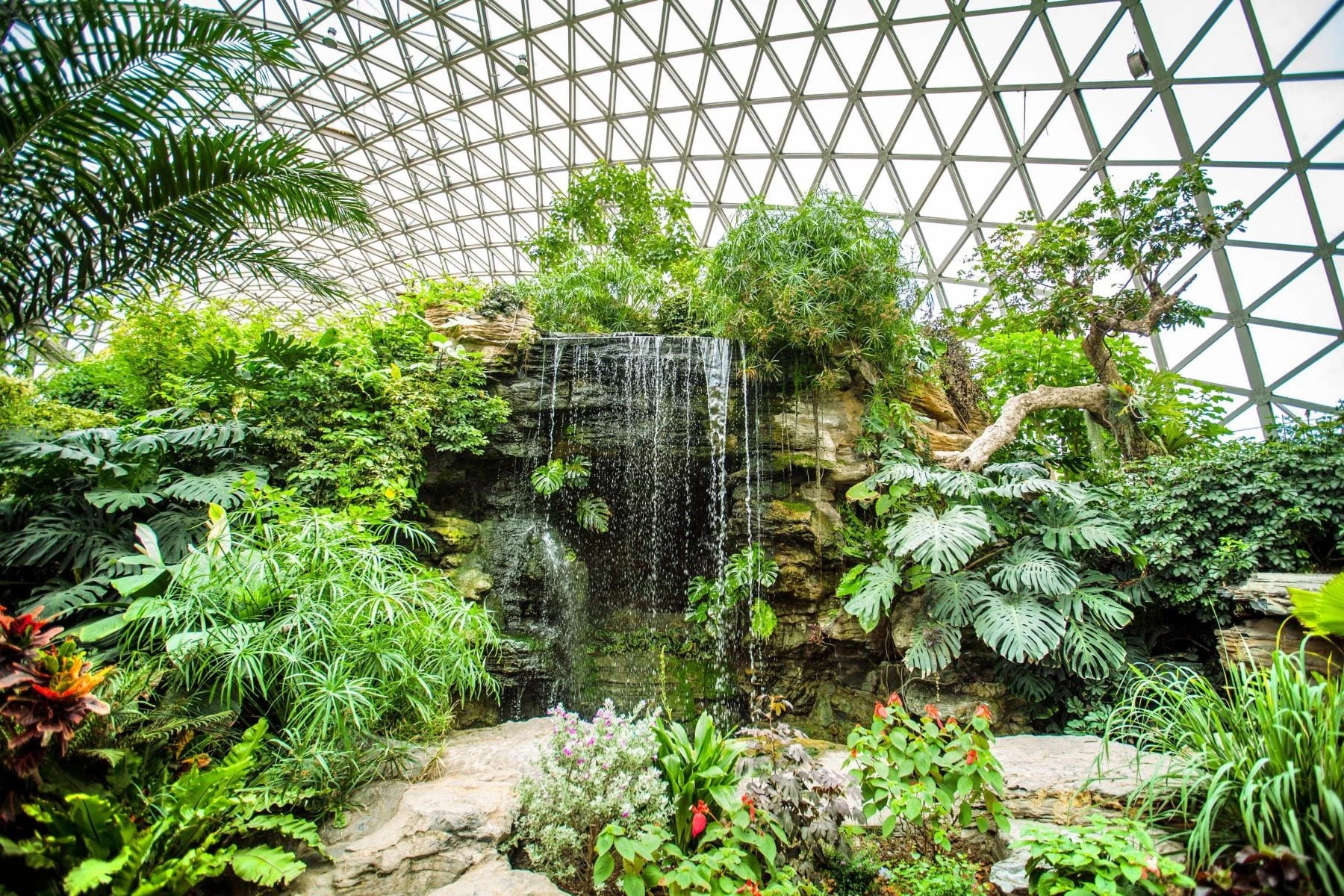 В саду несколько тематических зон, включая оранжерею с тропическими и пустынными растениями, каменный сад, розарий и секцию лекарственных трав. Одна из главных достопримечательностей – огромная стеклянная теплица, разделенная на три климатические зоны: тропики, пустыни и субтропики. Здесь можно увидеть редкие виды орхидей, пальм и суккулентов. На территории сада также расположены искусственные озера, дорожки для прогулок и зоны отдыха.