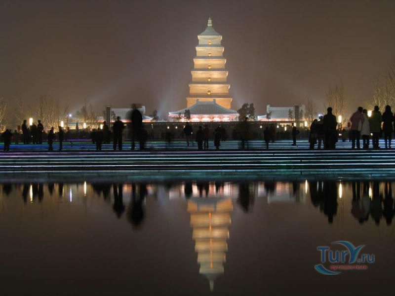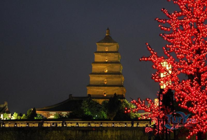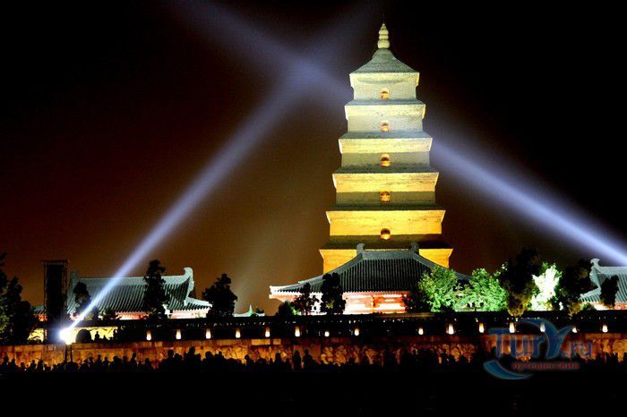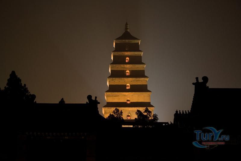 Большая пагода Диких гусей (Даяньта) построена в традициях индийского зодчества в 652 году. Изначально пагода была пятиярусной, однако в 704 году были надстроены еще пять ярусов, три верхних сильно пострадали во время средневековых войн. На сегодня, сохранились семь ярусов пагоды, высотой 64 метра. Название пагоды древняя легенда связывает с Буддой, который, будучи в этих местах, испытал искушение полакомиться мясом диких гусей, но сумел побороть его. Вокруг пагоды расположен буддийский монастырь с большим парком, в парке стоит памятник Сюань Цжану, парк украшен статуями выдающихся китайских поэтов, мыслителей, художников, учёных.