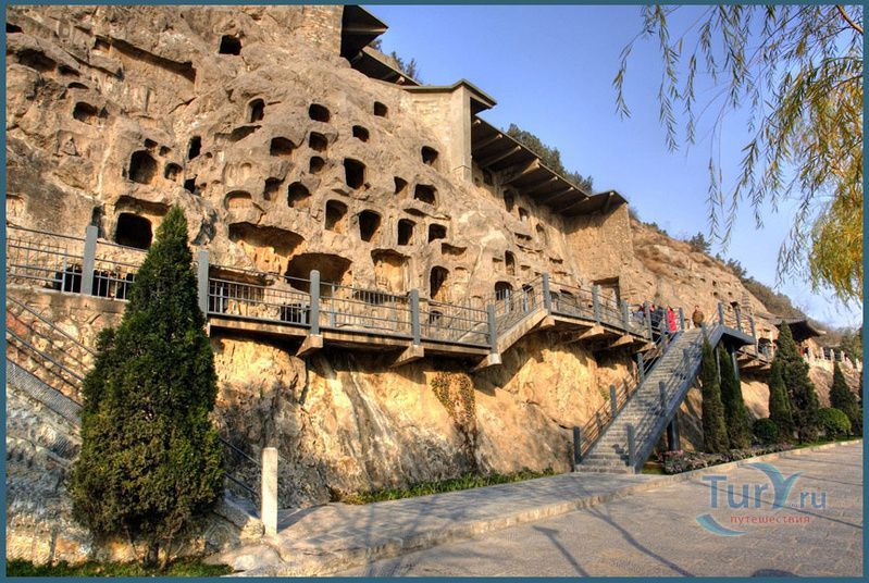 Гроты Лунмэня – буддистский пещерный храмовый комплекс, расположенный в 12 км к югу от Лояна. Ниши и пещеры всех возможных форм и размеров, протяженностью около километра, высечены в известняковых породах гор с обеих сторон реки И. На восточном берегу находится большое количество небольших пещер, служивших жилищем для монахов. В начале и в конце комплекса берега соединены мостами. Началом строительства гротов на Лунмэне считается 493 год, когда император Сяовэнь Северной Династии Вэй перенес свою столицу в Лоян из Датуна. Начиная со строительства первого грота, Пещеры Гуян, резные работы на Лунмэне продолжались с перерывами в течении 700 лет на протяжении правления десяти различных династий. Сейчас здесь находится 2345 пещер и ниш, более 100 000 изображений Будды и более 60 пагод. Самое высокое изваяние достигает 17 метров, а самая маленькая скульптура святого - всего 2 сантиметра в высоту. Гроты Лунмэня считаются лучшими среди трех образцов подобного рода искусства в Китае. В 2000 году Гроты Лунмэня были внесены в Список Всемирного Наследия Юнеско.