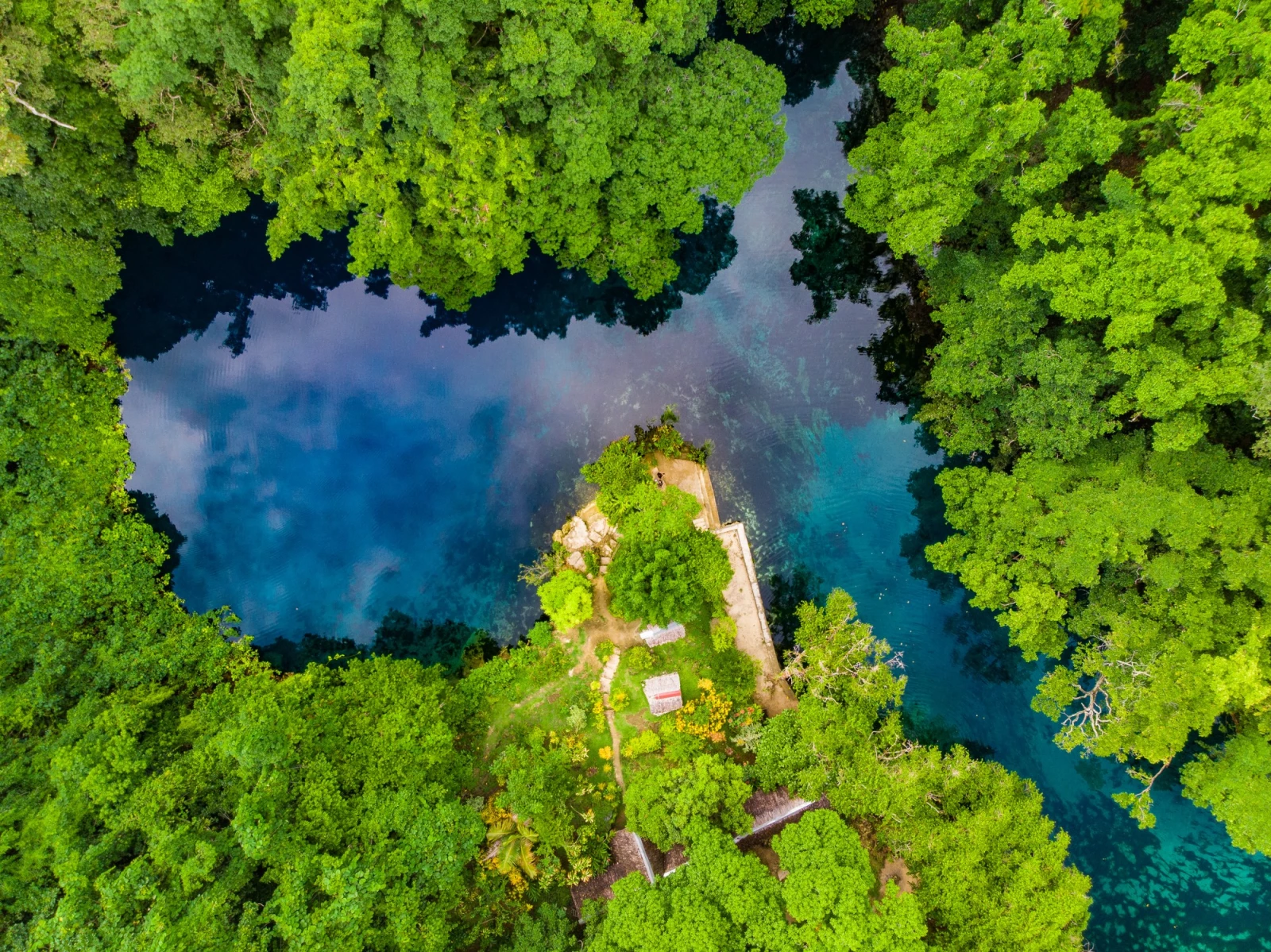Matevulu Blue Hole — один из самых захватывающих природных водоемов Вануату, спрятанный в густых тропических лесах острова Эспириту-Санто. Этот глубокий карстовый источник поражает своей кристально чистой водой насыщенного сапфирового оттенка, создавая иллюзию нереального подводного мира. Его вода наполняется за счет подземных потоков, проходящих через известняковые породы, что придает ей исключительную прозрачность.