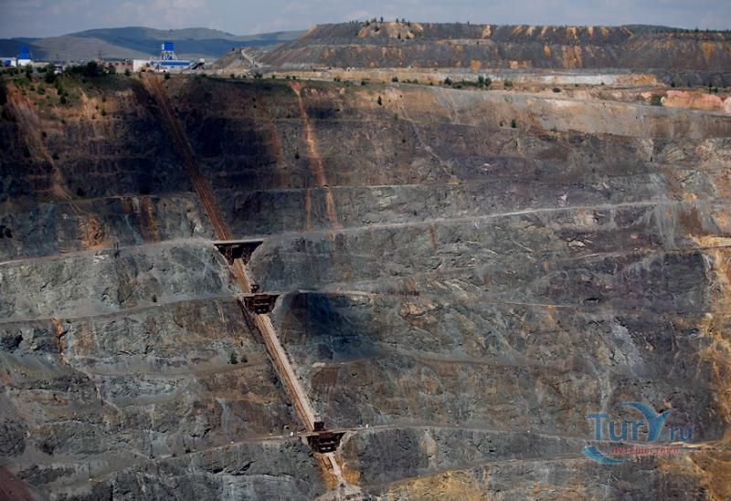 Именно на Сибайском карьере впервые в России начали сгружать добытую ценную породу в специальные грузовые вагоны на дне карьера и поднимать вверх по скиповому подъемнику. Сегодня он уже не функционирует, но отлично заметен на склоне, а затем теряется в глубине земли.