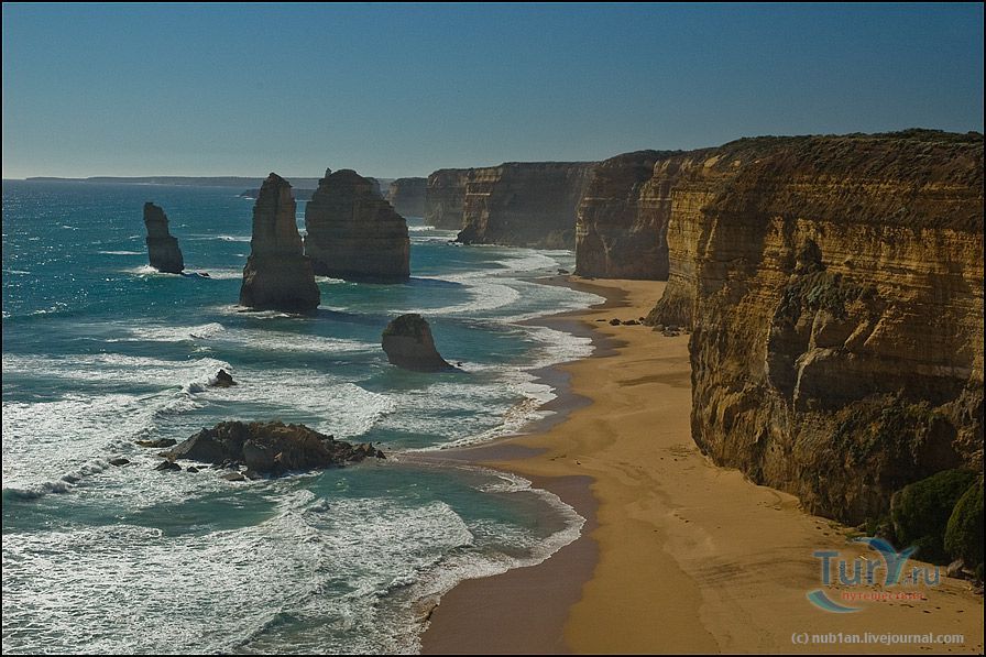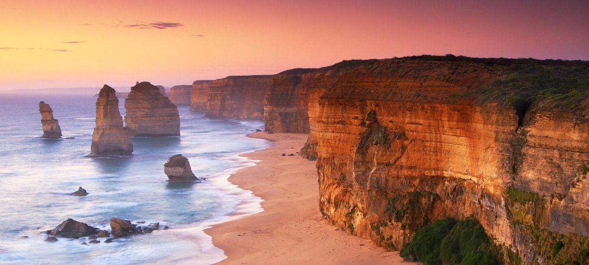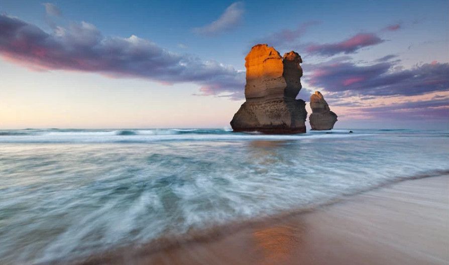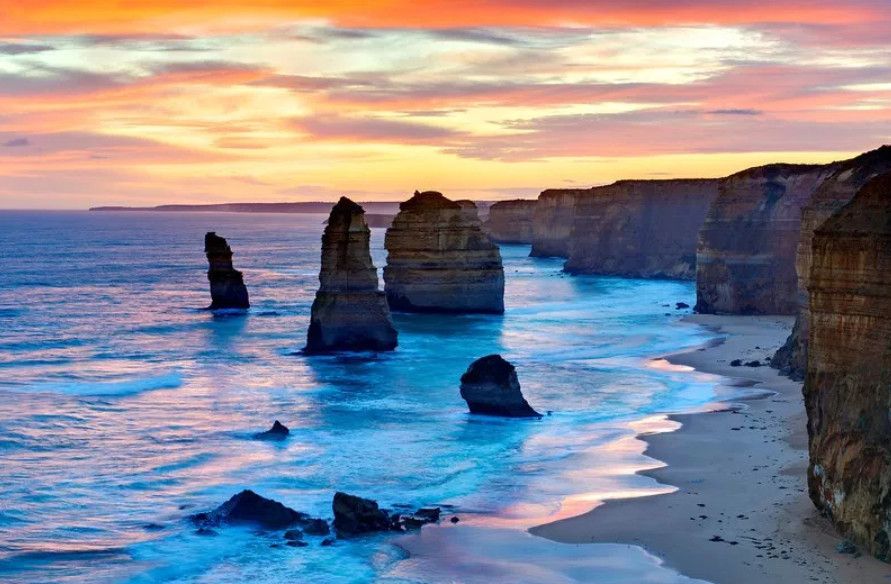 Это звучное имя получили несколько скал, стоящих неподалеку от берега в национальном парке «Порт Кэмпбэл». Скалы здесь сложены из известняков. Возникли они 10-20 миллионов лет назад. Сначала это было монолитное образование, но долгие годы под воздействием воды и ветра они разрушались, некоторые части берега откалывались и оставались стоять в океане отдельными глыбами. Именно из остатков некогда огромных скал состоит живописная группа, которая привлекает сюда фотографов и просто коллекционеров красивых мест. До 50-х годов прошлого века окутанные брызгами вечно неспокойного океана скалы назывались весьма прозаично – «Свинья с поросятами», но это звучит не слишком заманчиво для туристов. Пришлось переименовать. Даже тогда скал было уже не 12, а 9. Сейчас их и вовсе 8 – в 2005 году на глаз у изумленной публики один «апостол» обрушился в воду. Произошло это в результате естественной эрозии, винить некого. Со временем все эти скалы постигнет та же участь. Так что, спешите видеть. В месте расположения этих знаменитых скал оборудована смотровая площадка, откуда открывается наиболее удачный вид. Кроме этого, возможны и вертолетные прогулки над океаном все с той же целью – оценить незабываемую красоту древних геологических образований.