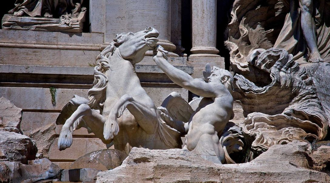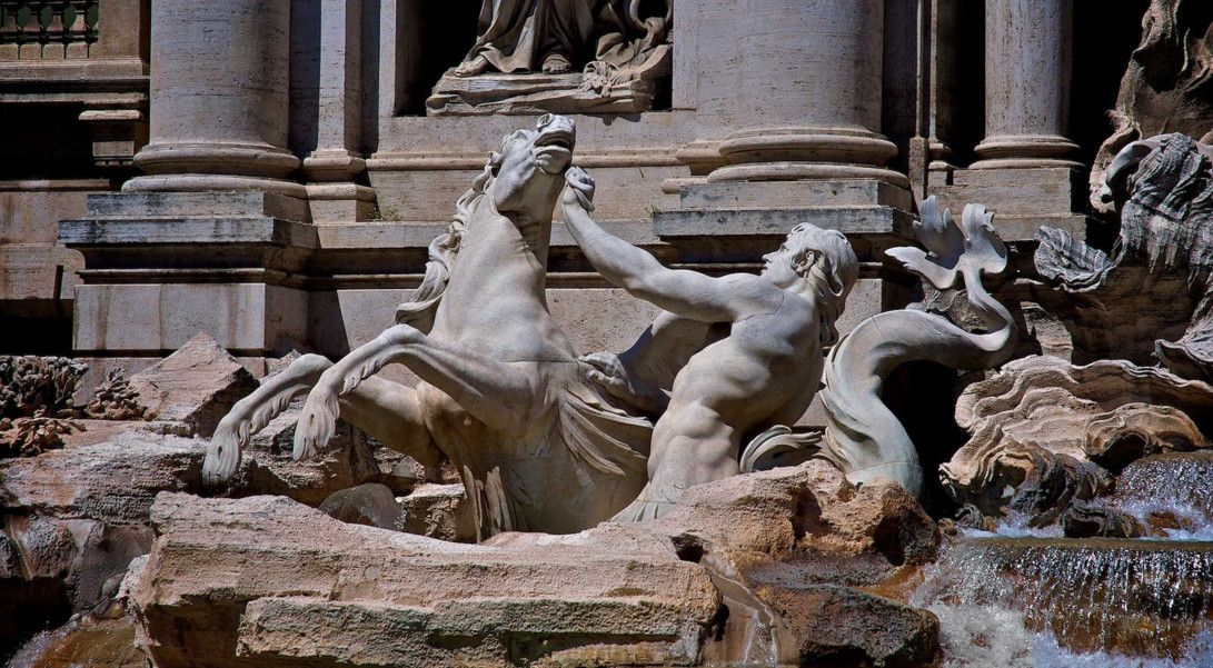 Величественный фасад дворца и фонтан воспринимаются как единое целое, и поэтому фонтан кажется ещё грандиознее. Из центральной ниши дворца как на колеснице выезжает Нептун, сидящий на морской раковине, которую тянут тритоны и морские коньки. В нишах по бокам от Нептуна помещены аллегорические фигуры, а над ними - барельефы. На правом барельефе молодая девушка указывает римским солдатам, где находится источник. От этого источника проложили акведук, по которому вода поступала в Рим, и акведук, так же как и источник, получил название Acqua Vergine (Acqua - вода, Vergine - девушка).