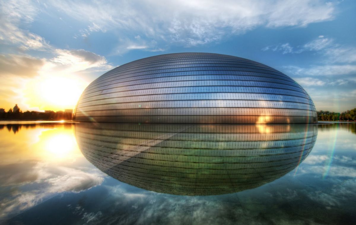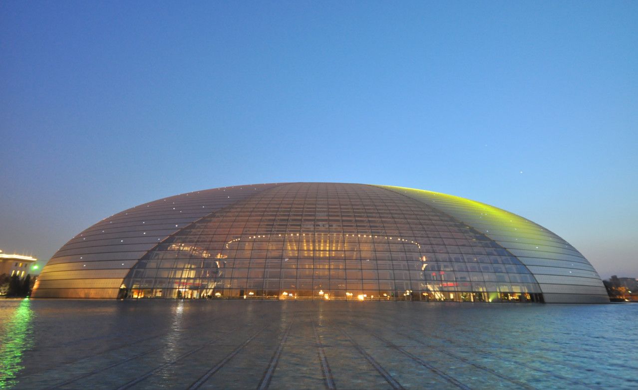 Национальный центр исполнительских искусств – официальное название этого фантастического здания. Однако за ним закрепилось другое название, его называют Большим Национальным театром. Строительство этого сооружения было запланировано в ходе подготовки Пекина к Олимпийским играм. Архитектором выступил француз Поль Андрё, строительство продолжалось с декабря 2001 по декабрь 2007 года и обошлось государству в 3.2 миллиарда юаней.