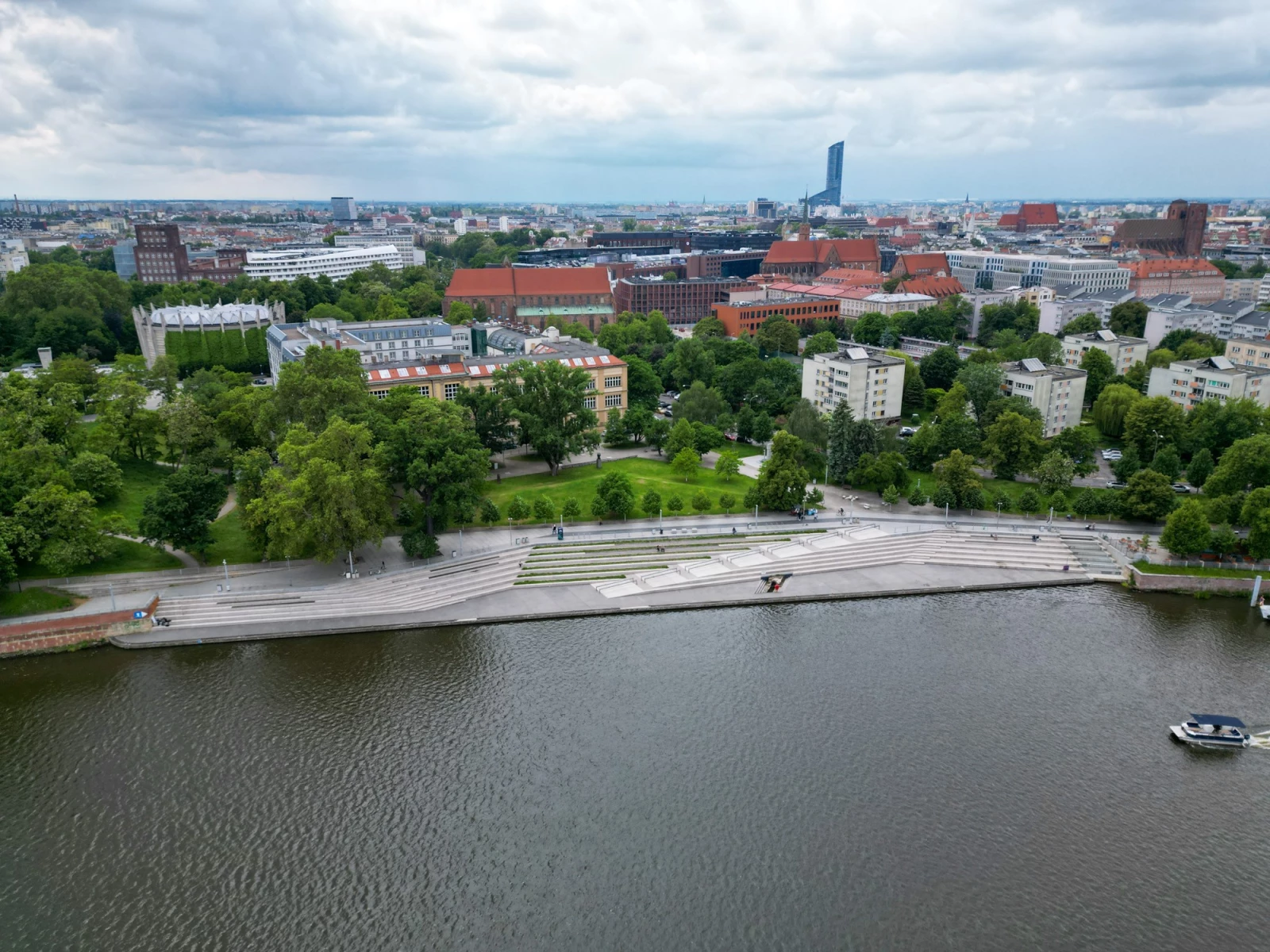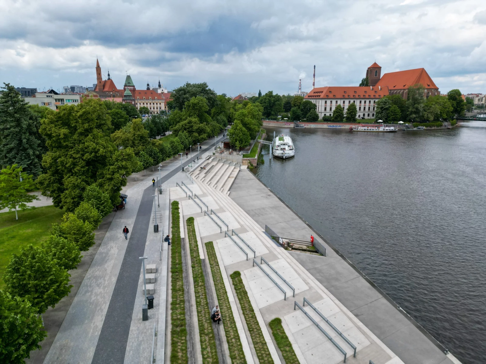 51.113, 17.0412Продолжаю обзор неочевидных, но прикольных мест Вроцлава :) Наша сегодняшняя локация - Бульвар Ксаверия Дуниковского, он же, по совместительству, набережная, пролегающая вдоль прекрасной Одры, прямо напротив знаменитого Тумского острова с Вроцлавским Собором и Архиепископским дворцом. С бульвара к реке спускается Амфитеатральная пристань, которая, как несложно догадаться, выполнена в виде крупн