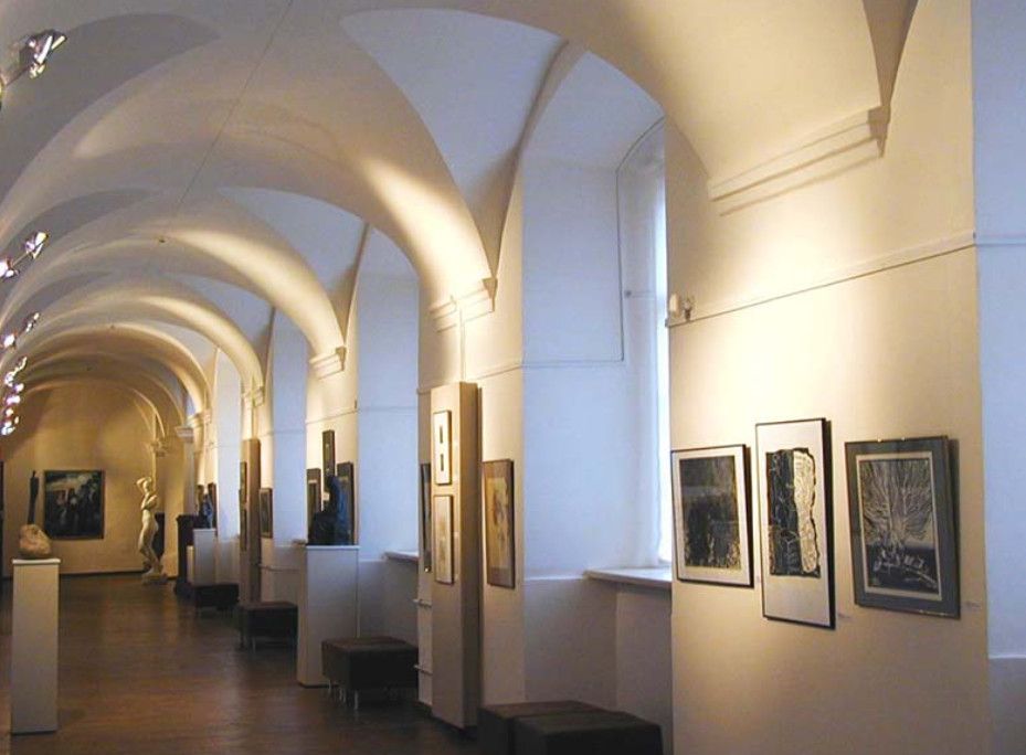 С 2002 года Художественная галерея, как филиал Национального Полоцкого историко-культурного музея-заповедника, размещается в одном из корпусов бывшего иезуитского коллегиума, открытого в 1581 году по указанию короля Речи Посполитой Стефана Батория. После 1784 года строительство новых корпусов коллегиума возглавил Габриель Грубер — известный в Европе архитектор, математик, физик, астроном, теолог. По его проекту в 1788 году был построен специальный трехэтажный корпус для музея. Среди коллекций исторического и естественнонаучного планов, в этом музее находилась картинная галерея, в собрании которой были полотна Сальватора Розы из Вероны, варшавского художника Шимона Чеховича, работы Игнатия Дорати, Августина Недвецкого, Малаховского и других, копии с полотен Рафаэля, Тициана, Рубенса. Стены галереи украшали фрески, выполненные самим Г.Грубером. В настоящее время в Художественной галерее размещены: постоянная экспозиция, несколько залов для сменных выставок и Художественный салон. Постоянная экспозиция знакомит с развитием изобразительного искусства Беларуси, начиная с раздела «Стенопись XII–XIX веков Спасо-Преображенской церкви XII века Полоцкого Спасо-Евфросиньевского монастыря». Раздел иконописи XVIII–XIX веков, помимо бытовавших культовых предметов, включает в себя шесть икон XVIII века местной школы иконописи из иконостаса Софийского собора, коллекцию культового медного литья XIX века и предметы археологии XII века. Раздел «Искусство Беларуси XX века» в хронологическом порядке, с 1935 года, прослеживает этапы развития белорусского искусства и знакомит со значимыми именами художников. Коллекции постоянно пополняются по мере проведения археологических раскопок в городе, раскрытия стенописи одного из древнейших храмов Беларуси, Спасо-Преображенской церкви XII века, изучения и поиска исторического прошлого Полотчины, приобретения произведений белорусских художников.