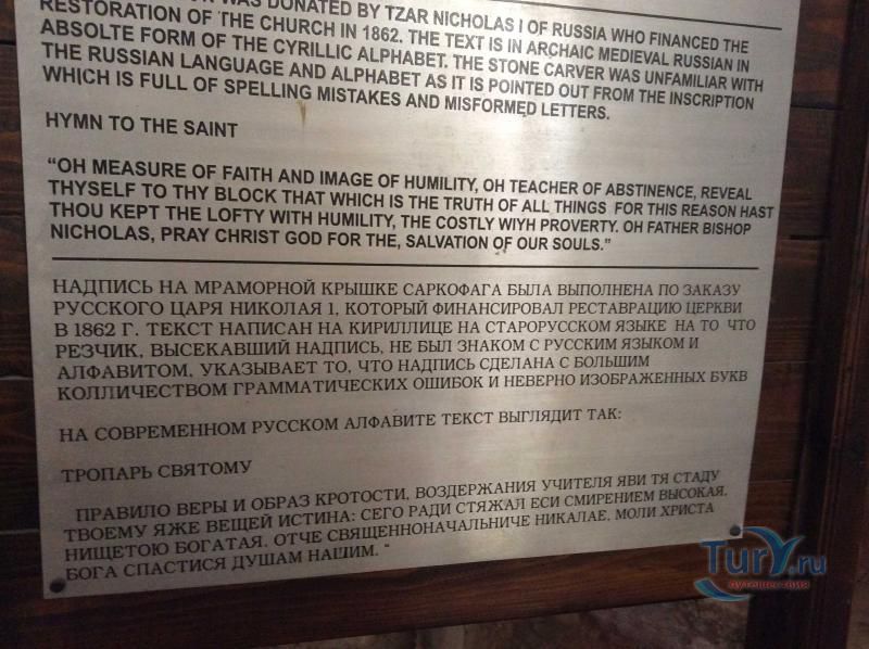 Церковь Святителя Николая в городе Демре, в древности известном как Мира, была построена в IV веке. Церковь является третьим по важности религиозным сооружением византийской архитектуры на Востоке. В христианстве Святой Николай почитается как чудотворец и считается покровителем моряков, купцов и детей. Николай родился в городе Патара в 60 км от Демре и был очень религиозным с раннего детства. Он полностью посвятил свою жизнь христианству. Став епископом города Мира и прожив в нем до самой своей смерти, Святитель Николай был захоронен в саркофаге из белого мрамора, установленном в храме. И хотя в мае 1087 года мощи святого были вывезены итальянскими купцами в Италию в город Бари, в Демре и сейчас приезжают люди, чтобы посетить святыню и прикоснувшись к саркофагу попросить у Святителя Николая о помощи.