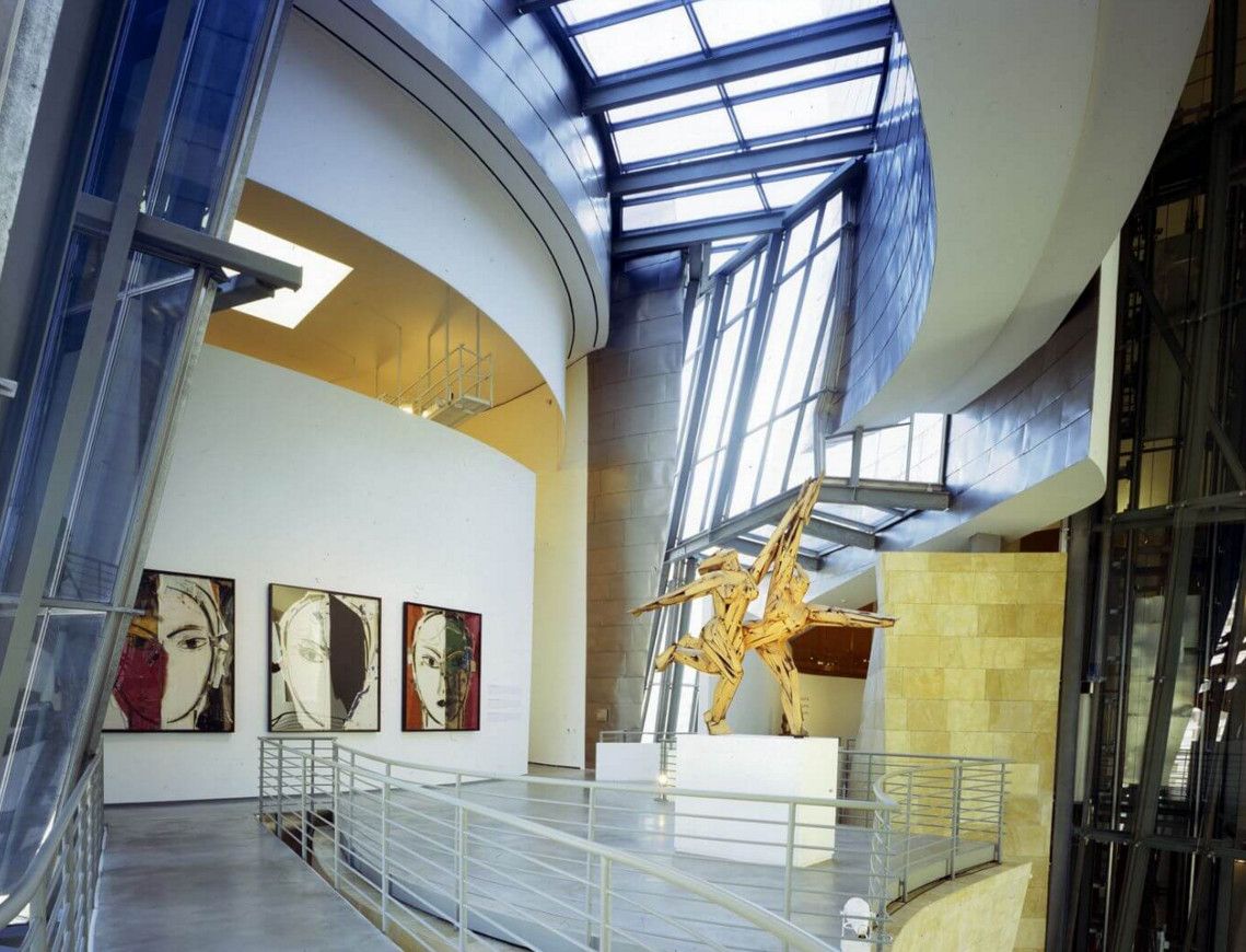 Здание можно разделить на несколько тематических залов. Залы футуризма и абстракционизма, возглавляемые Кандинским, зал сюрреализма, где можно посмотреть картины Дали и, конечно, зал кубизма, где представлены шедевры Пикассо. Здесь же можно увидеть знаменитые принты Мерилин Монро выполненные Энди Уорхолом. Но, самое интересное в музее, пожалуй, то, что инсталляций и электронных произведений здесь куда больше, чем традиционных картин. Так, например, стоит обратить внимание на скульптуры Ричарда Сери, выполненные из атмосферостойкой стали, под названием «Суть времени» — эта своеобразная коллекция представляет собой серию абстракционистских работ художественно — философского направления под названием «беспредметное искусство». Ярким представителем этого течения 20 века был Кандинский, написавший «Черный квадрат».