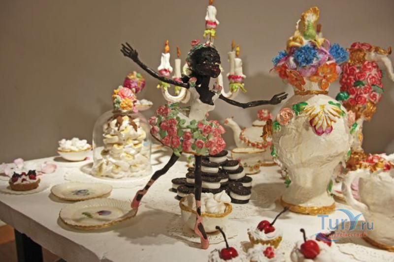 Напротив здания находится два арт-объекта. Первый — огромный металлический паук работы американки Луизы Буржуа. За своих пауков она даже получила “Золотого льва” на 48-й Венецианской биеннале. Второй - созданный опять-таки американским художником Джеффом Кунсом - гигантский щенок, украшенный цветами.