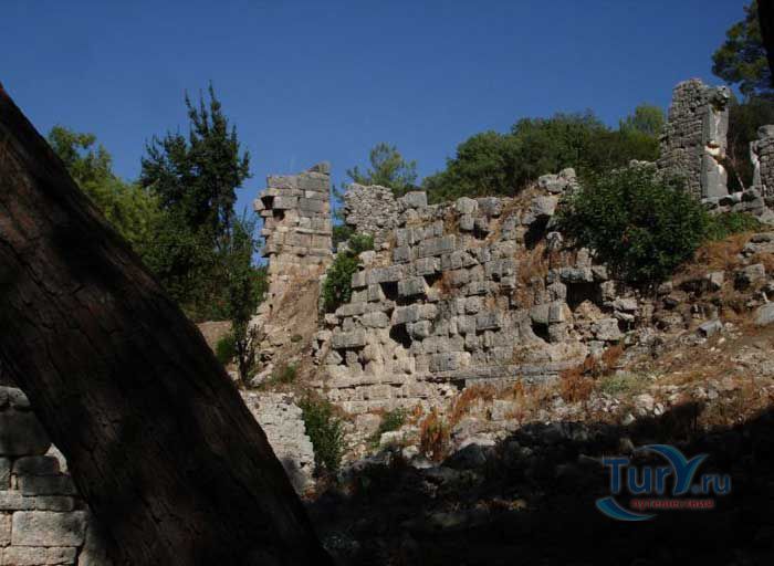 Фазелис был основан колонистами с острова Родос и быстро превратился в богатый портовый город: его жители удачно торговали гражданством – за 100 драхм любой житель Малой Азии мог стать гражданином Фазелиса. В 129 году город посетил римский император Адриан, в честь которого были построены триумфальные ворота, форум, поставлены многочисленные статуи. В те времена город имел три порта (восточный, средний и южный). В военных целях использовался южный порт, чему свидетельствует крепость на крутом утесе, окруженная мощными стенами. В ней сохранилась дозорная башня. По акведуку из источника внутри крепости вода поступала к берегу бухты. Это один из самых длинных античных акведуков. Рядом сохранились руины бань и гимназий. В густой растительности скрываются руины акрополя. Рядом – остатки агоры, триумфальных ворот, театра, храмов и гробниц. С холма амфитеатра можно насладиться замечательным пейзажем, который образуют три порта.