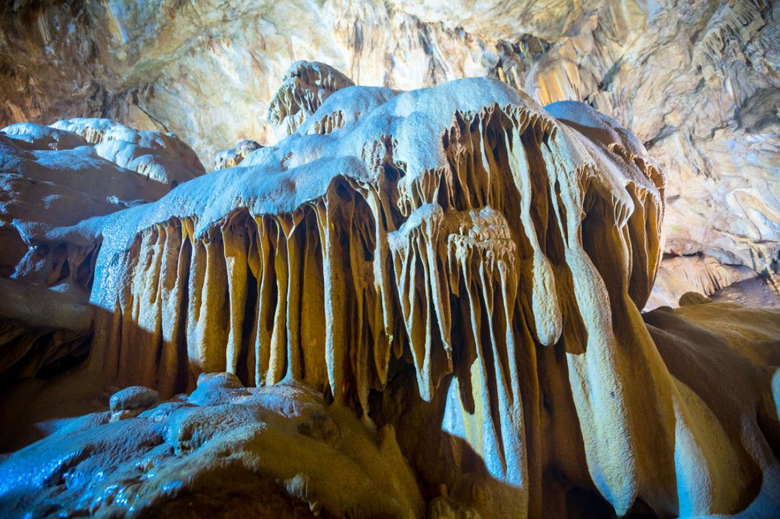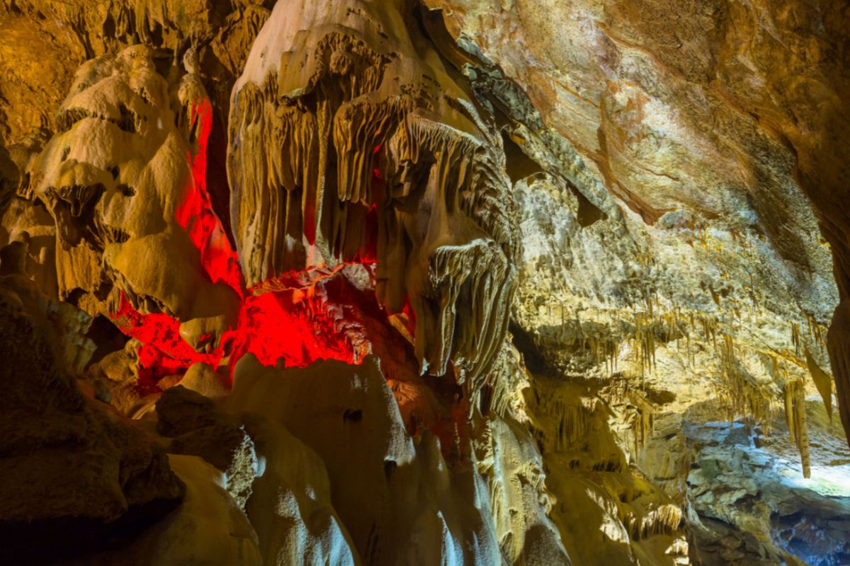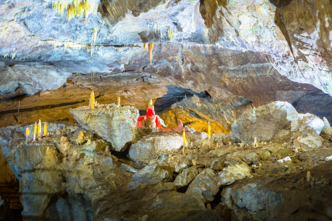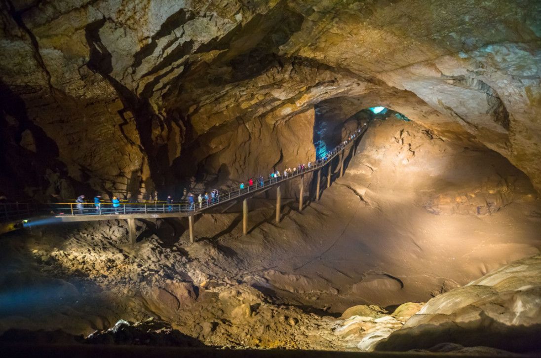 Новоафонская пещера - одна из крупнейших и красивейших карстовых пещер в мире, своими размерами она может посоперничать с Шкоцианской пещерой в Югославии и Карлсбадской в США. Объем только исследованной части пещеры составляет более 1,5 миллионов кубических метров. Расположена пещера в Новом Афоне (Абхазия), на склоне Иверской горы. Открыта она была сравнительно недавно - в 1961 году житель Нового Афона Гиви Смыр (сейчас известный художник и спелеолог) с помощью обычной верёвки впервые спустился в большой провал "Бездонная яма". В этом же году спелеологи начали исследование пещеры, а в 1975 году 9 залов были открыты для посетителей - по искусственному туннелю, проведенному к пещере, прошёл первый поезд "пещерного метро" с туристами. В ходе экскурсии по Новоафонской пещере посетители увидят протянувшиеся на сотни метров огромные залы и вьющиеся причудливыми меандрами галереи. Пещерный ландшафт просто поражает своим разнообразием и красотой - сумрачные нижние залы, сверкающие белизной великолепные сталактитовые дворцы, изумрудные пещерные озера, каменные валы, "музыкальные" гроты и кристаллические образования самых разнообразных форм и расцветок. В залах пещеры сооружена пешеходная дорожка длиной 1,4 километра с обзорными площадками и устроено художественное освещение. Все залы озвучены.