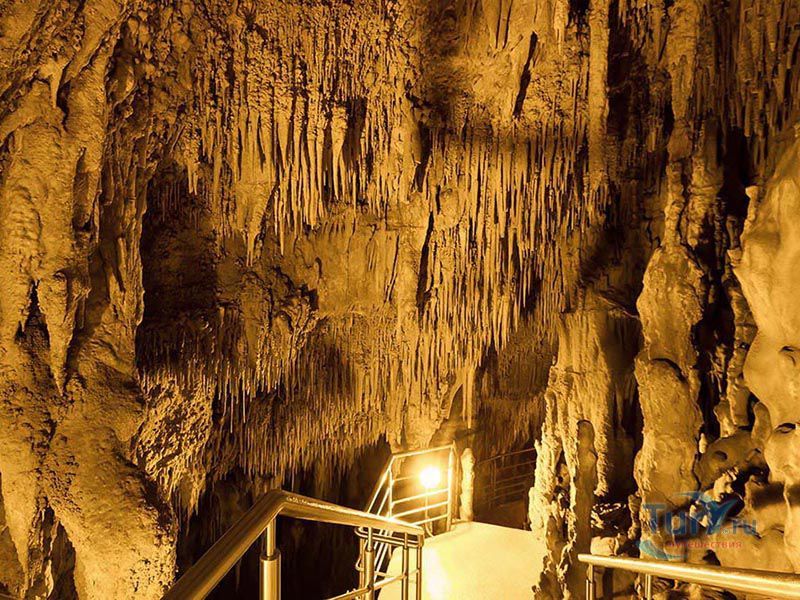 Три миллиона лет ушло у природы на создание этих непревзойденных декоративных камней, словно вышедших из самых фантастических снов. Среди огромных красных и белых "водопадов" и гигантских колонн можно различить фигуры слонов, птиц, осьминогов и многочисленные грибы. Сталагмиты тут довольно редки и во время тура вы обязательно будете делать возле них остановку. Площадь пещеры составляет 1500 квадратных метров, а длина маршрута около 500 метров.