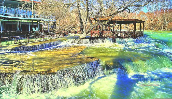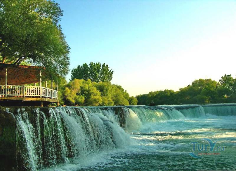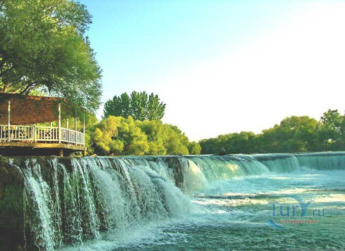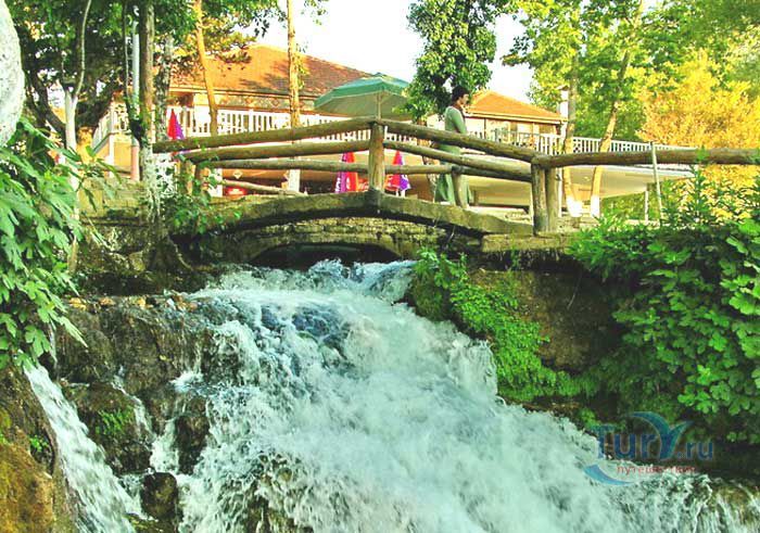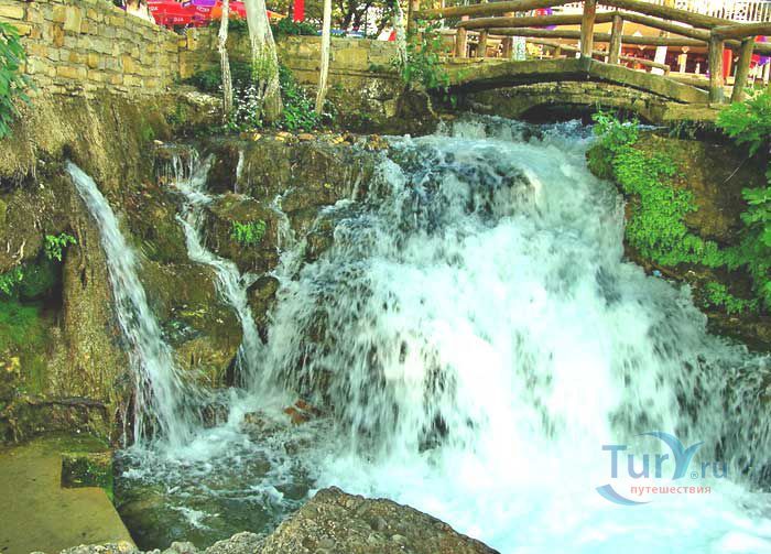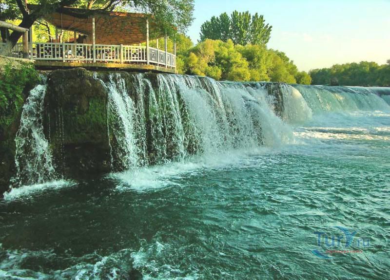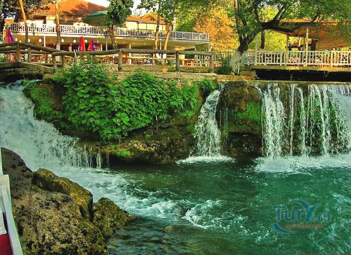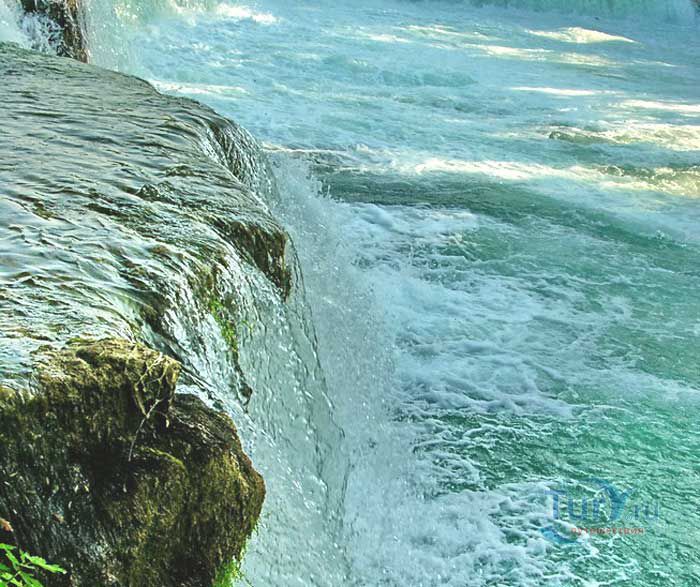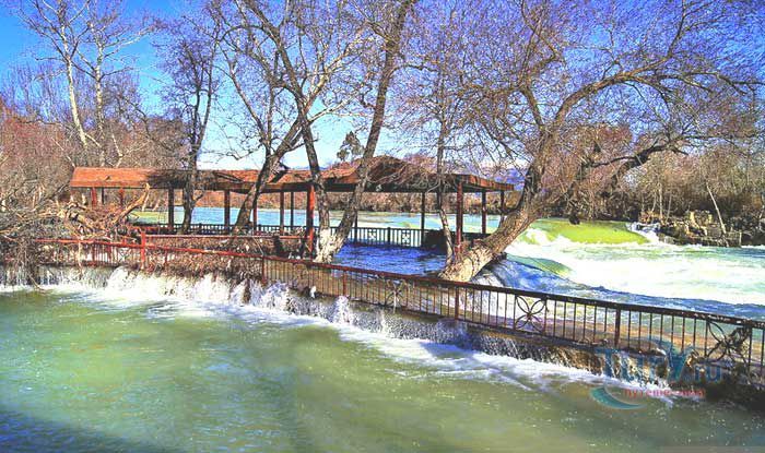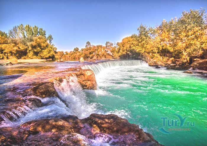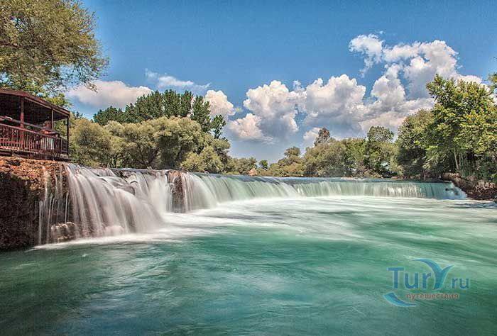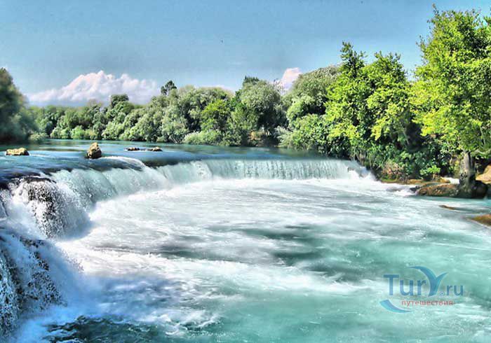 Горная река Манавгат знаменита своим небольшим, но очень красивым водопадом. Водопад Манавгат находится около города Сиде, в 3 км от города Манавгат. Высота водопада составляет 2 метра, а ширина 40 метров. Пусть он и небольшой, но своей красотой завораживает каждого. Глядя на бурный поток стремительной горной реки, падающей с высоты, замираешь от той красоты и мощи, которую имеет вода. В яркий солнечный день можно увидеть как перемещается радуга над водопадом, играя в брызгах воды. Весной, когда интенсивно тает снег в горах, река становится полноводной и Манавгат может спрятаться под чистыми водами реки. Около водопада расположены тенистые сады, создающие место для приятного отдыха. Здесь же на берегу разместились рыбные рестораны, кафетерии, места для отдыха и киоски по продаже сувениров. Водопад Манавгат был изображен на обратной стороне турецкой банкноты достоинством 5 лир в 1968-1983 годы.