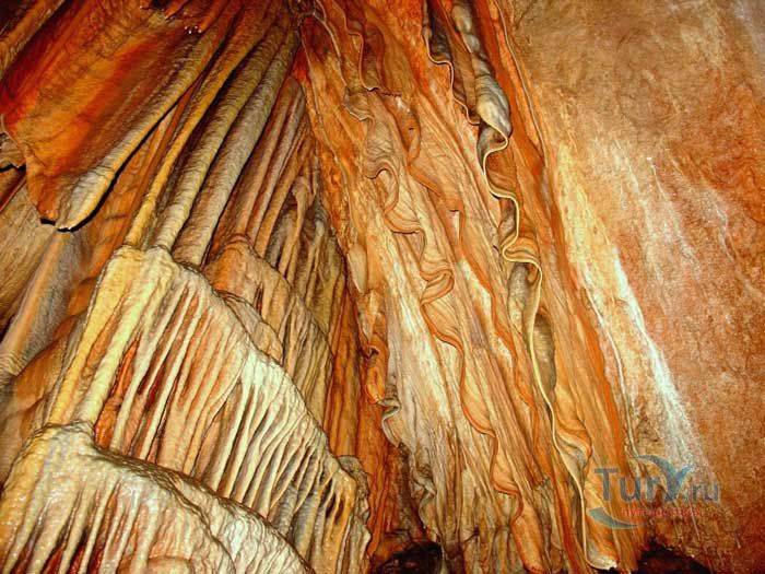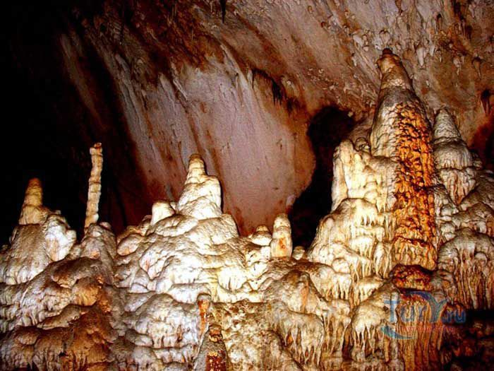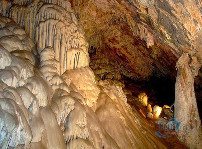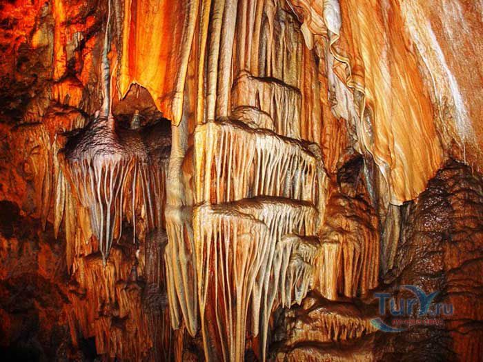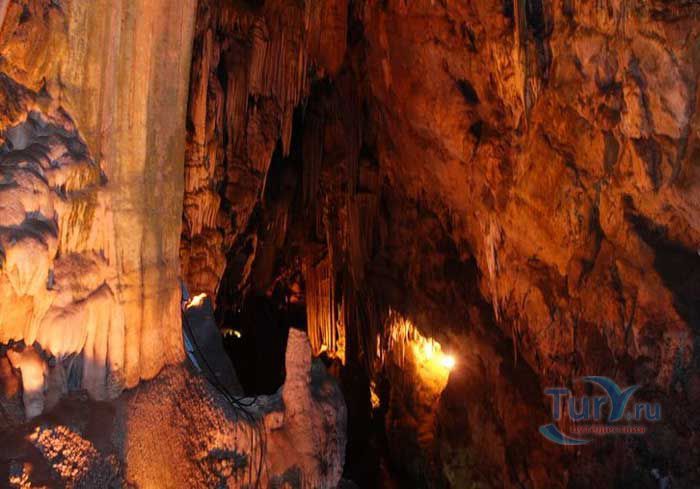 Вертикальная пещера Дим в поселке Кестел была открыта спелеологами в 1986 году на горе Джеби-Рейс и является одной из главных туристических достопримечательностей Аланьи. Это еще одно сказочное место, где начинает играть воображение. Причудливые формы сталактитов и сталагмитов и изогнутые формы каменных карнизов вызывают неописуемый восторг. Приглушенный свет внутри пещеры помогает увидеть причудливые формы, которые создала природа за тысячелетия. Фантазия природы безгранична, она создает веками свои шедевры, которыми мы не устаем восхищаться. Благодаря дорожкам и мостикам, которые сделаны для удобства посетителей, можно попасть в любой уголок пещеры. Особенно красив один из них, где находится озеро с прозрачной водой. Место просто потрясающее, от него невозможно оторвать глаз. В пещере большая влажность и довольно холодно, постоянная температура 18-19 градусов, так что не забудьте захватить с собой теплую одежду.