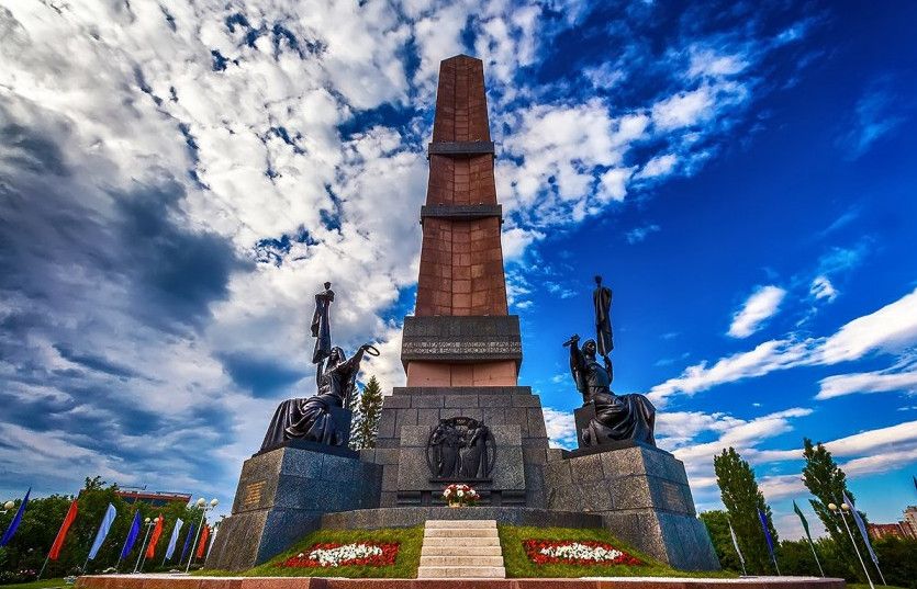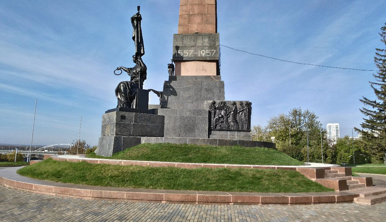 В 1957 году республика отмечала 400-летие добровольного присоединения Башкирии к Русскому государству. 14 июня этого года состоялась закладка памятника Монумент Дружбы, торжественное открытие которого произошло 7 августа 1965 г. 35-метровый гранитный обелиск поднялся в небо на возвышенном берегу реки Белой. Центральное место в композиции занимают две вертикальные стелы, скрепленные тремя монолитными кольцами-обручами из серого гранита. У основания обелиска спокойно и величаво сидят аллегорические женские фигуры - русская и башкирка. Их руки простерты, они увенчивают лавровыми венками рельеф, изображающий момент оформления принятия русского подданства прибывшим посольством башкир. Об этом событии напоминают слова и даты, высеченные на памятнике: "1557 - 1957", "Слава великой братской дружбе русского и башкирского народов".