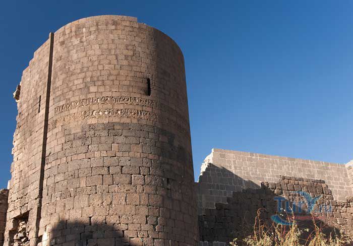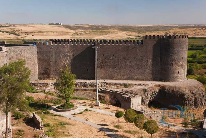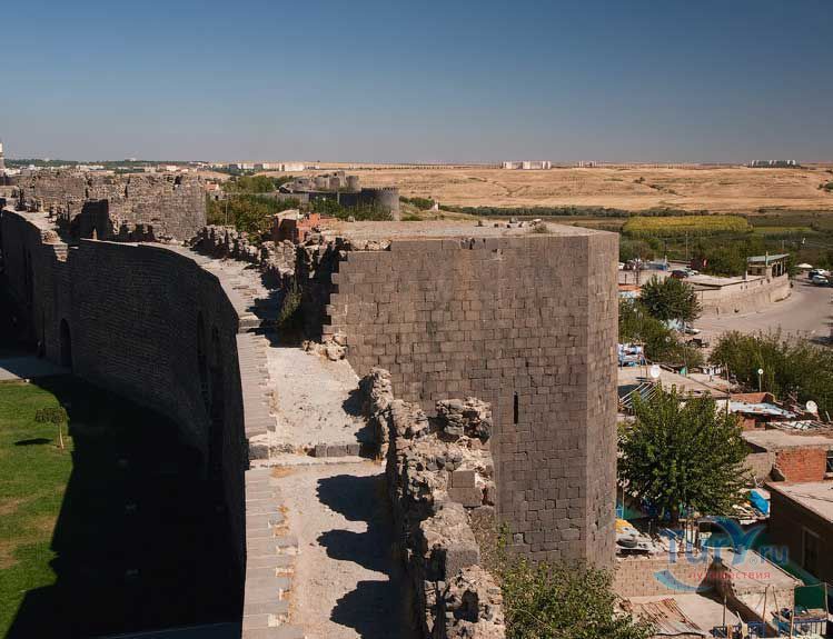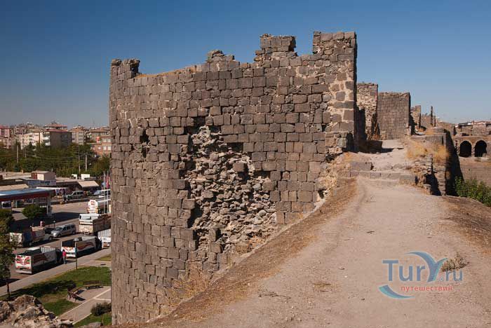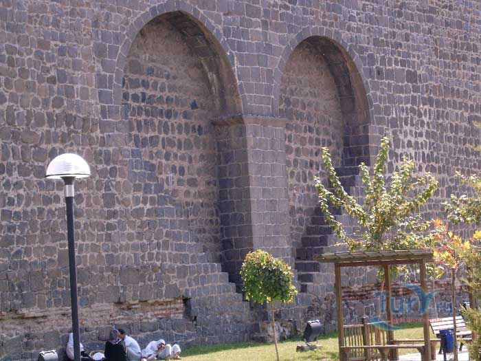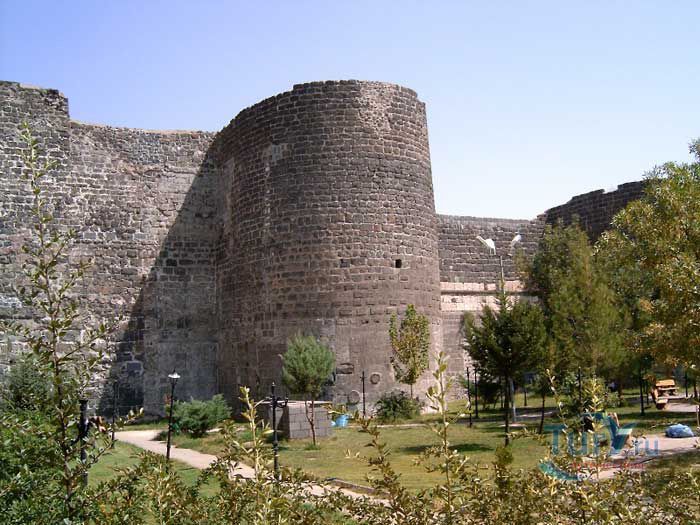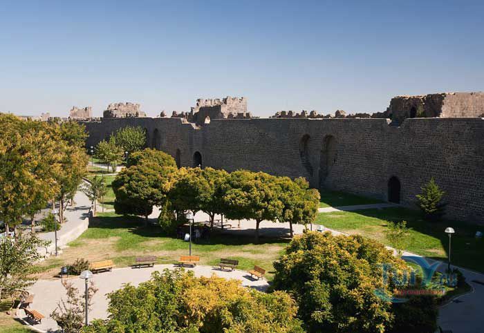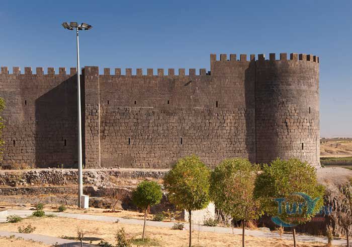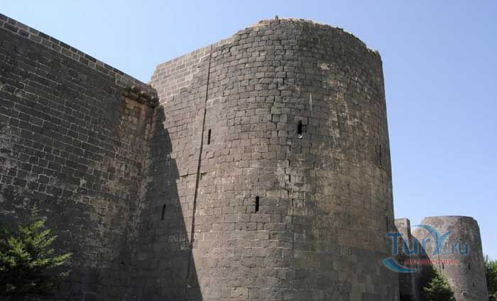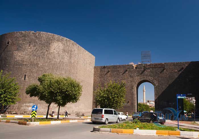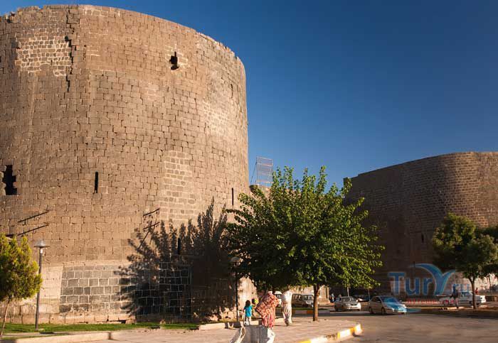 В Диярбакыре находится одно из самых больших из сохранившихся крепостных сооружений в мире – это Диярбакырская стена-крепость, которая является второй по протяженности после Великой Китайской Стены. Точную дату сооружения установить не удалось, но предполагается что возведение этого величественного фортификационного сооружения началось в 349 году, Суммарная протяженность сохранившейся части крепостной стены составляет порядка пяти км, ширина колеблется от трех до пяти метров, а высота от десяти до двенадцати метров. В стене насчитывается 82 башни и четверо ворот, которые ориентированы по сторонам света. Ворота украшены барельефами и надписями: «Горные ворота» – на севере, «Ворота Мардын» - на юге, «Новые ворота» - на востоке, «Ворота Урфы» - на западе. Сооружение построено из темно-серого базальта, который придает стене-крепости могущественный вид. Величие крепостного сооружения служит образцом выдающихся достижений военного строительства древности и поныне поражает воображение и восхищает своей мощью. Стены города Диярбакыр в 2015 году внесены в список Всемирного наследия ЮНЕСКО.