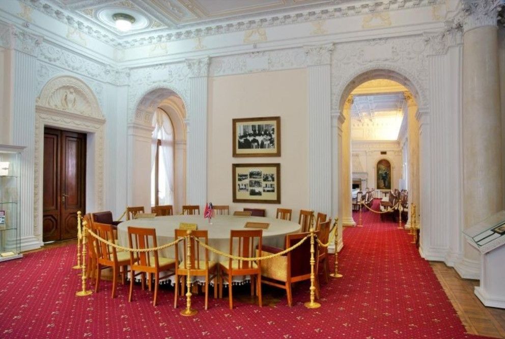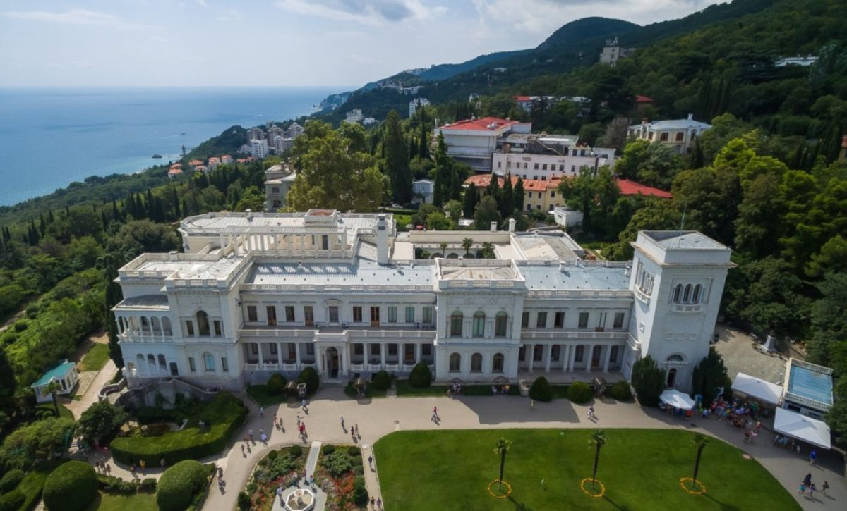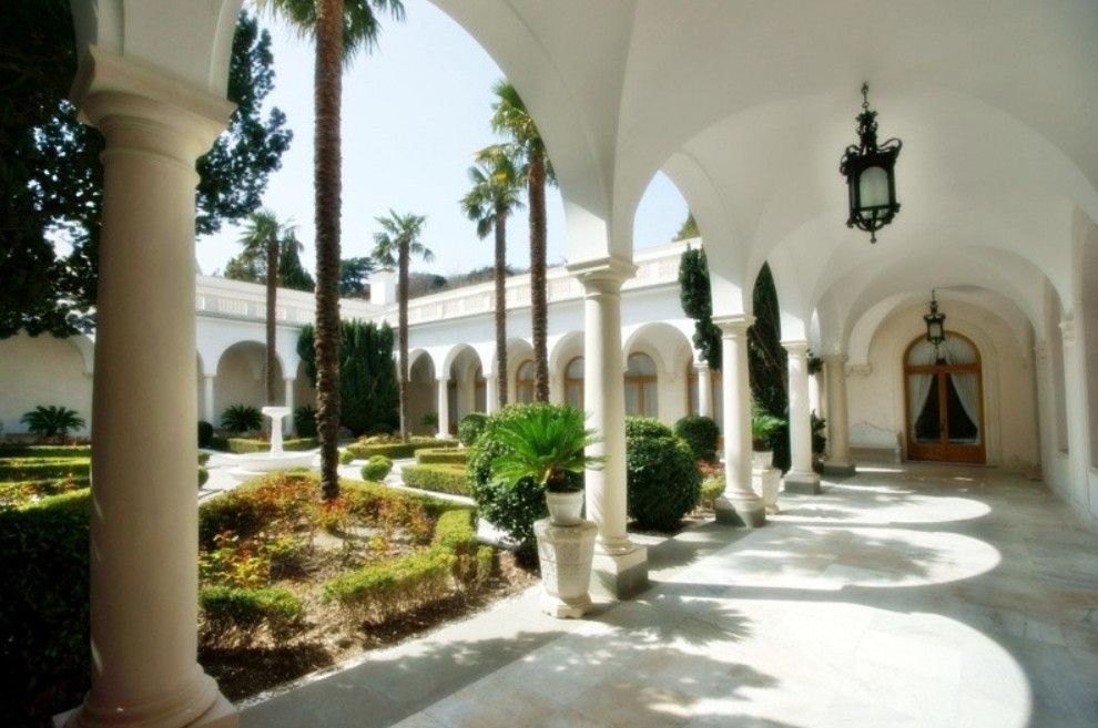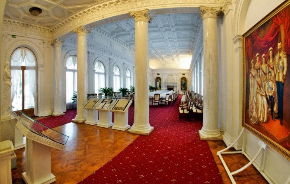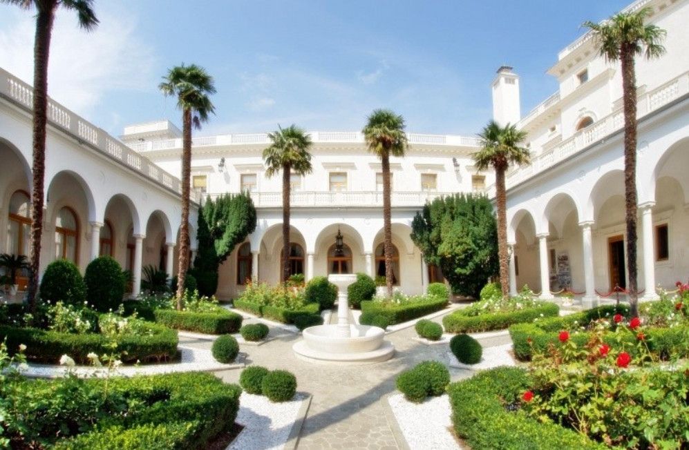 Ливадийский дворец - это бывшая летняя резиденция последнего российского императора Николая II. Ливадийский архитектурно-парковый комплекс - один из выдающихся памятников архитектурного и паркового искусства. Дворец возведен по проекту замечательного ялтинского архитектора, академика Николая Петровича Краснова в стиле итальянского Возрождения. В 1925 году в бывшем царском дворце был открыт санаторий для крестьян. 4-11 февраля 1945 года, за три месяца до победы над гитлеровской Германией, в Большом Белом зале дворца проходила Крымская (Ялтинская) конференция глав правительств трех государств антигитлеровской коалиции - СССР, США и Великобритании, на которой были приняты "Декларация об освобожденной Европе", решение о создании ООН и другие документы, имевшие важное для судеб мира значение. Во время работы конференции во дворце была резиденция президента Соединенных Штатов Америки Франклина Рузвельта.