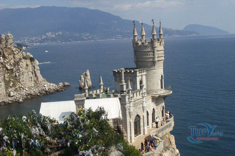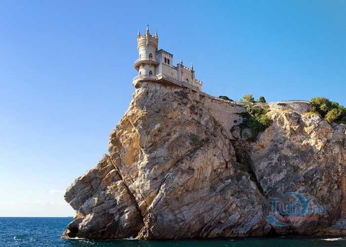 Ласточкино гнездо - памятник архитектуры и истории, расположенный на отвесной 40 - метровой Аврориной скале мыса Ай-Тодор в посёлке Гаспра. Архитектурный памятник 1912 года выполнен в стиле средневекового замка. Благодаря оригинальности решения архитектурной постройки Ласточкино гнездо являет самым известным сооружением и символом Крыма. Первое деревянное строение на этом месте было возведено для отставного русского генерала после русско-турецкой войны 1877-1878 годов. Вторым хозяином этой удивительной дачи стал придворный врач А. К.Тобин. После его смерти домиком некоторое время владела вдова, которая продала участок московской купчихе Рахманиной. Она снесла старое здание, и в скором времени появился деревянный замок, названный ею Ласточкино гнездо. Свой нынешний вид Ласточкино гнездо получило благодаря нефтяному промышленнику барону Штейнгелю, который любил отдыхать в Крыму. Штейнгель приобрёл на Аврориной скале дачный участок и решил построить там романтический замок, который напоминает средневековые сооружения на берегах Рейна. Проект нового дома был заказан инженеру и скульптору Леониду Шервуду. Рядом со зданием был разбит сад, который в результате землетрясения в 1927 году обрушился в море. В 1968 году была проведена робота по укреплению скалы и здания, которые обеспечивают безопасность строения. В июле 2011 года здание передано в муниципальную собственность.
