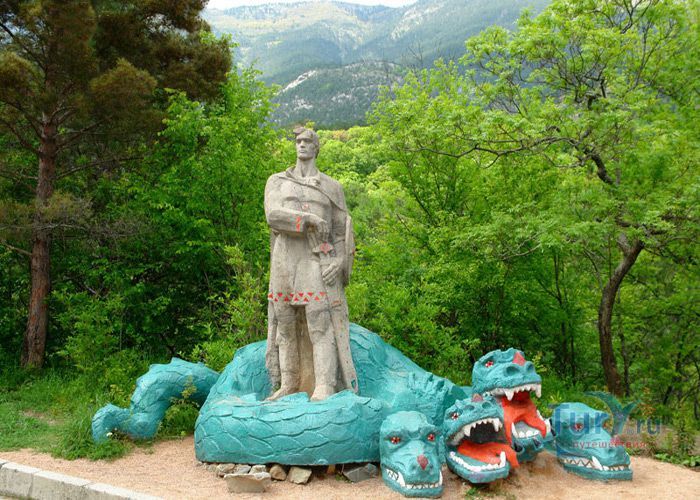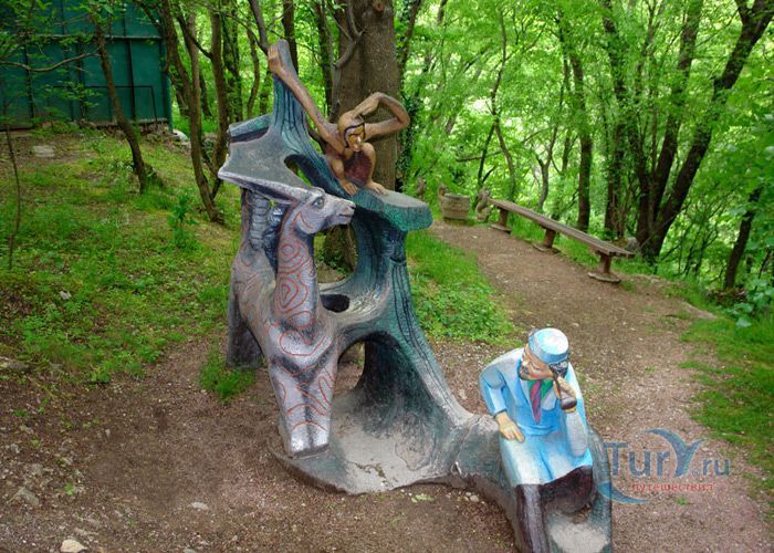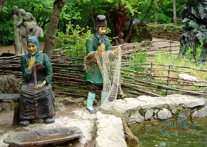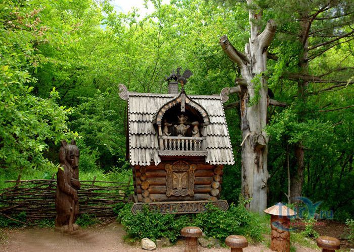 Поляна сказок расположена в окрестностях города Ялта, на опушке заповедного леса, у подножия горы Крестовая скала (Ставри-Кая) в живописной лесной местности. Этот уникальный, волшебный мир, где на уютных лесных полянах среди деревьев, на пригорках и у прудов расположились персонажи народных сказок. У входа в музей посетителей встречает "Тридцать витязей прекрасных ", из поэмы А.С. Пушкина "Руслан и Людмила", а за ними начинает рассказывать сказки добрый, " ученый кот". Идя по лесным тропинкам, любуясь прекрасной природой, погружаешься в волшебный мир народного фольклора, где всегда торжествует справедливость, а добро побеждает зло. Здесь знакомые с раннего детства три поросенка и три медведя, добрая Аленушка с братцем Иванушкой, злая Баба Яга и проказник Буратино, прекрасная Белоснежка в окружении смешных гномиков и много других героев сказок. С "Поляна сказок" открывается прекрасный вид на обрывистые склоны главного хребта Крымских гор, а также водопад Учан-Су и скалу Ставри-Кая. Красота окружающей природы придает музею необычайную привлекательность.