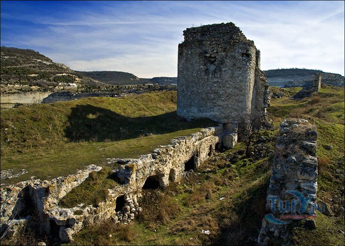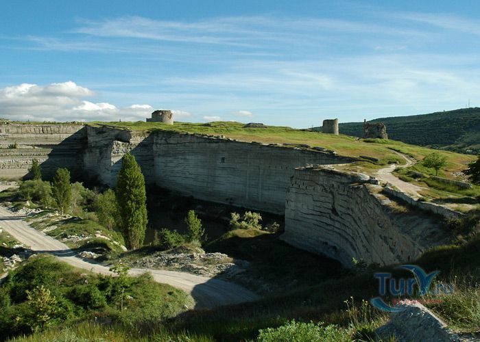 Крепость Каламита находится в Инкермане, это один из интереснейших памятников крымского средневековья. Возникновение Каламиты относится к VI веку. Крепость была воздвигнута для защиты торговых путей, которые вели из степной части Крыма в Херсонес. Она была построена в устье реки Черной, на плато Монастырской скалы, хорошо защищенной со всех сторон. В 1434 году Каламита была захвачена генуэзцами, разорена, затем вновь восстановлена феодоритами. В 1475 году турки завоевали всё Мангупское княжество, в том числе и крепость Каламиту. Завоеватели переименовали крепость, назвав ее Инкерманом, что означает "пещерная крепость". Название это не случайно: скала, на которой построено укрепление, изрезана многочисленными пещерами. Одни из них имели военное значение, другие использовались как хозяйственные, культовые и даже жилые помещения. Крепость Каламита изрезана массой ходов и пещер самых разных очертаний. В древности к ним были пристроены многоярусные сооружения, сообщавшиеся друг с другом переходами, лестницами, балкончиками. Пещер сотни, число одних лишь пещерных храмов в Инкерманской долине исчисляется тремя десятками. Поистине это была целая монашеская страна, сравнимая разве что с греческим Афоном. Высоко над дорогой, на плато Монастырской скалы, хорошо видны остатки старинных сооружений крепости Каламита. До наших дней сохранились некоторые башни, остатки крепостных стен, фундаменты различных построек и пещерные храмы. И сейчас поражает воображение облик крепости. Кажется, что башни и стены крепости, как будто растут из скалы.