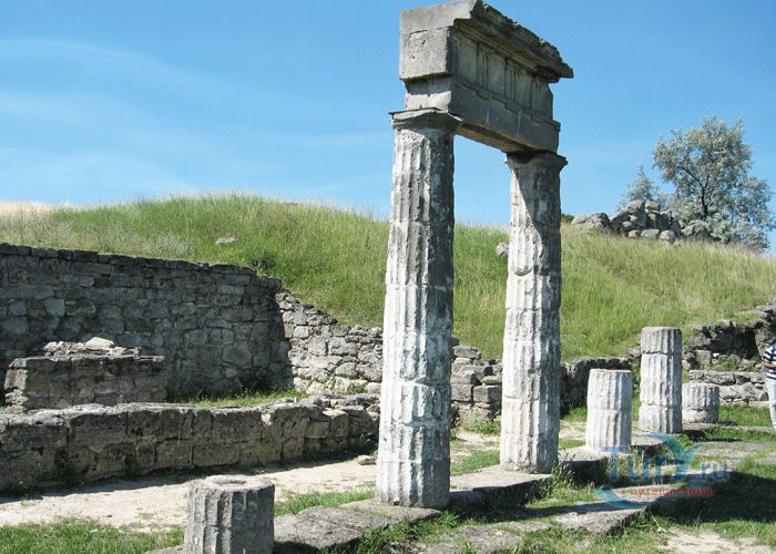 Пантикапей - один из древнейших городов мира, существовавший на месте современной Керчи, основанный древними греками, выходцами из Милета, в конце VII века до нашей эры. Согласно исследованиям город появился на горе Митридат как торговая колония, расположенная на выгодном пересечении торговых путей между Европой, Азией, Средиземноморьем и Китаем. В V веке до нашей эры Пантикапей являлся столицей Боспорского государства. За прошедшие тысячелетия на горе Митридат произошло много исторических событий, в числе которых - расцвет и гибель Боспорского царства. Склоны Митридата хранят следы истории античного города Пантикапей, руины, которого сохранились до наших дней.