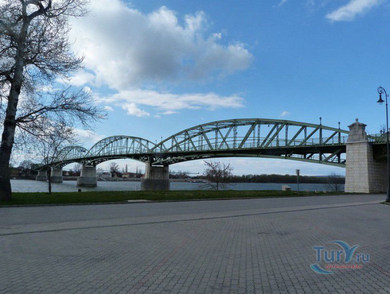 Мост Марии Валерии в Эстергоме - автомобильный мост через Дунай, соединяющий венгерский город Эстергом и словацкий город Штурово. Автором проекта моста является известный венгерский архитектор Янош Фекетехази, строительство велось с 1893 по 1895 год. Пятипролётный стальной мост длиной 517,6 метров (самый длинный пролёт имеет протяжённость 119 метров), названный в честь эрцгерцогини Марии Валерии, дочери императора Австро-Венгрии Франца Иосифа I, был открыт 28 сентября 1895 года. На торжественном мероприятии по этому поводу присутствовали члены королевской семьи и другие высокопоставленные особы Венгрии. За историю своего существования мост был разрушен дважды. Первый раз - 22 июля 1919 года, во время Первой мировой войны, чехословацкими войсками была взорвана западная часть моста со стороны города Штурово. В 1922 году мост Марии Валерии был отремонтирован, но использовался только для пешеходного сообщения, полная реконструкция моста была проведена лишь в 1927 году. Второй раз мост был разрушен во время Второй мировой войны - 26 декабря 1944 года отступающие немецкие войска взорвали мост Марии Валерии, как и другие мосты через Дунай в районе Эстергома. Мост был восстановлен лишь спустя 57 лет, его открытие состоялось 11 октября 2001 года (стоимость проекта составила 19,4 миллионов евро). По середине моста проходят государственные границы Венгрии и Словакии, так как обе страны являются частью Шенгенской зоны, на мосту отсутствует пограничный контроль. Уже через год восстановленный мост в обоих направлениях пересекли 2,5 миллиона человек и 500000 транспортных средств.