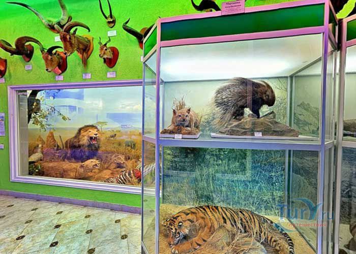 Зоологический музей Таврического национального университета им. В.И. Вернадского в Симферополе был основан в 1965 году. В музее содержится 3700 оригинальных экспонатов, которые были собраны в многочисленных научных экспедициях сотрудниками кафедры зоологии. Уникальные коллекции морских млекопитающих, акул и скатов, тропические, океанические и некоторые другие рыбы, а также многочисленные морские животные. Уникальные чучела двух медведей, леопарда, льва, двух львиц, зебры, дикобраза, страуса, венценосного журавля, макаки. Гордостью и настоящим триумфом перестройки музея стали новые высокохудожественные диорамы “Морские черепахи”, “Африканская саванна”, “Арктика”, “Антарктика”, “Командорские острова”, “Крымский заповедник”. Создание каждой из них было большим достижением сотрудников зоомузея.