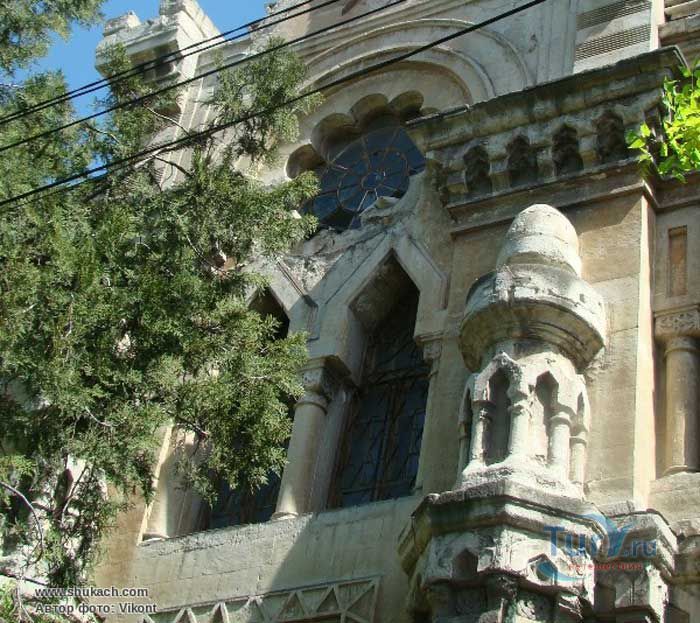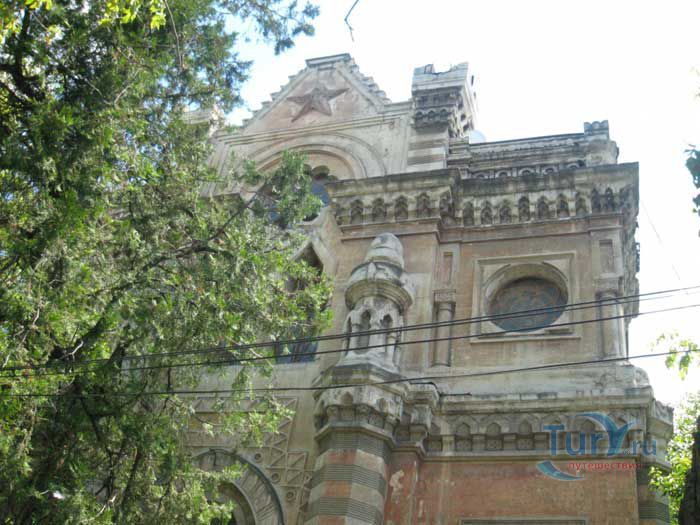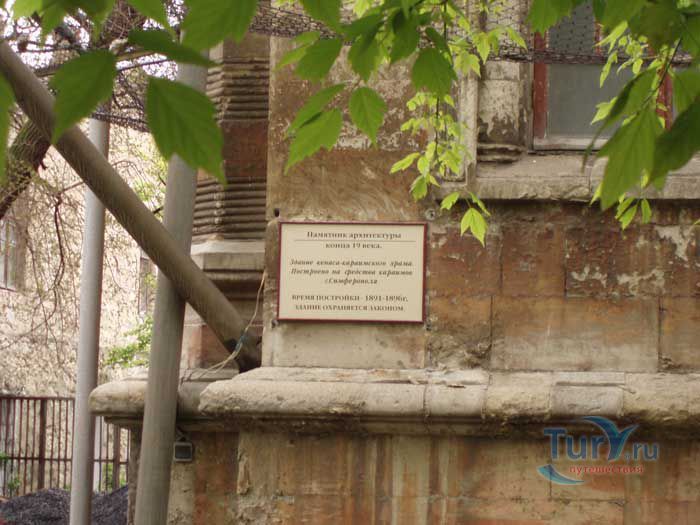 Караимская кенасса в Симферополе - молитвенный дом караимов, одного из самых малочисленных народов мира, памятник архитектуры конца XIX века. Первая кенасса строилась с 1891 по 1896 год. Во дворе существовала караимская школа. В связи с увеличением численности караимской общины, в 1955 - 1990 годах рядом со старым зданием кенассы было построено новое здание в эклектическом стиле, сочетавшее мавританский и готический стили. Двухэтажное здание, богато украшенное декоративными элементами и увенчанное со стороны парадного входа шестиконечной звездой Давида, производило самое благоприятное впечатление на всех, кто его видел. Резные каменные колонны вдоль наружных стен, круглые окна в верхней части здания, возвышающиеся над парадным входом башенки, ажурное окно – каждый элемент, каждая деталь, сочетаясь, образуют неповторимый ансамбль, который порадует глаз любого человека, интересующегося красивой архитектурой. Кенасса, молитвенный дом караимов, всегда восхищал своей красотой, гармонией декора и строгими прямыми линиями. С 1930 года кенасса закрыта. Караимская религиозная община добивается возвращения ей молитвенного дома.