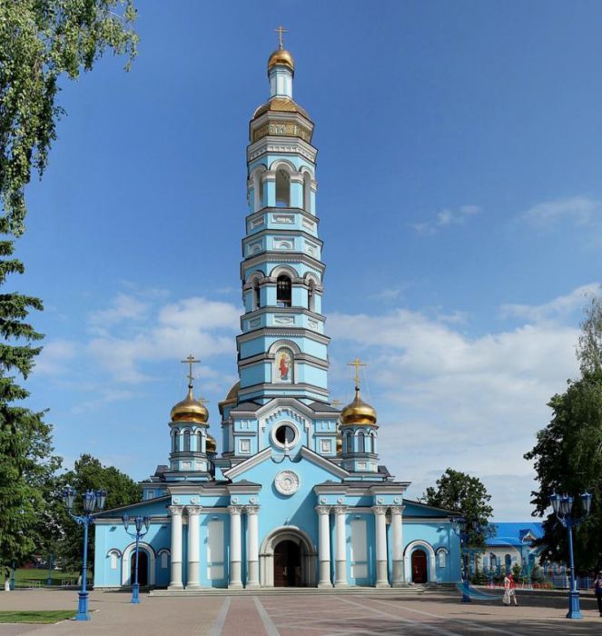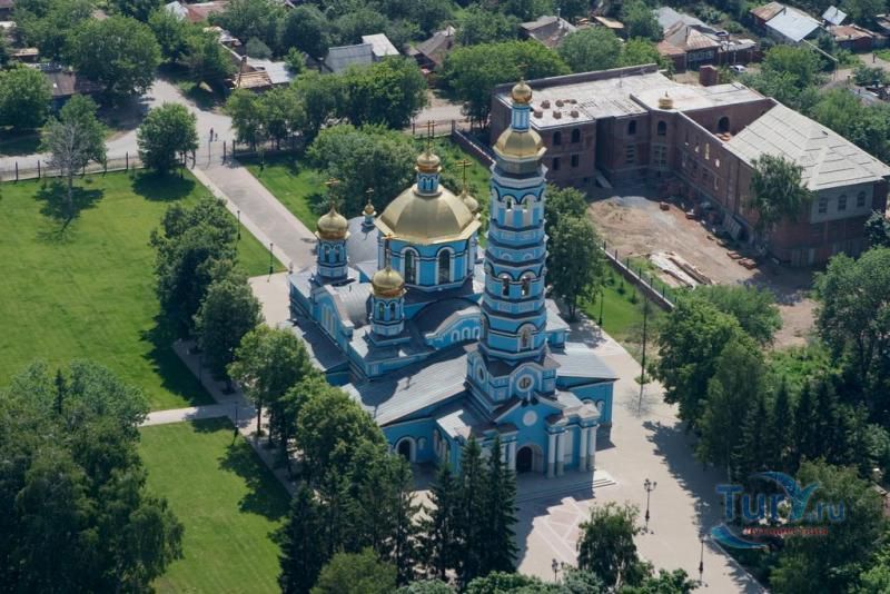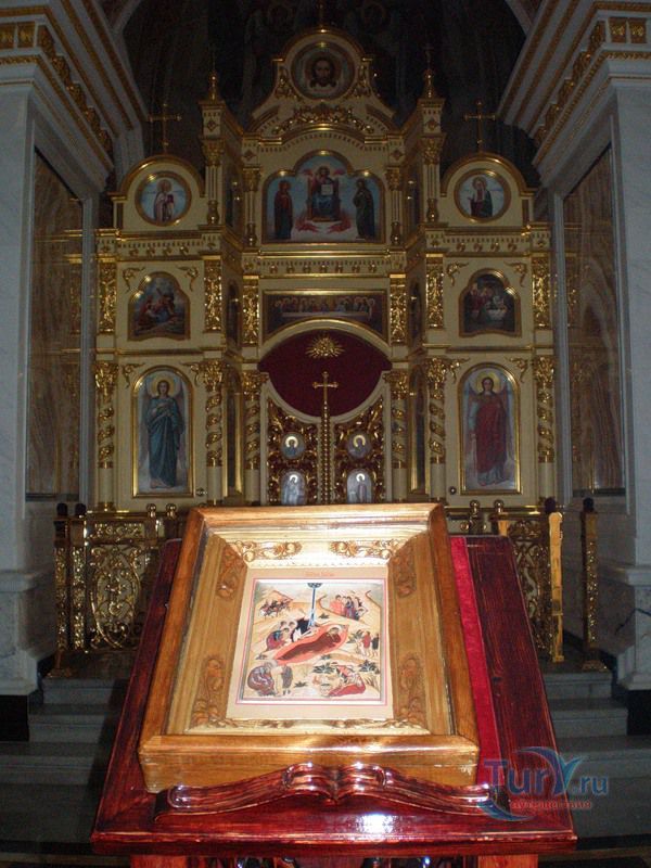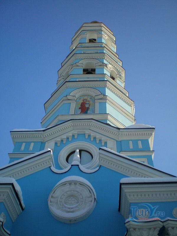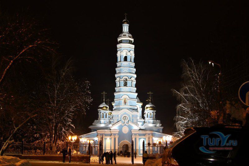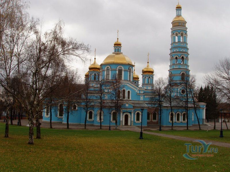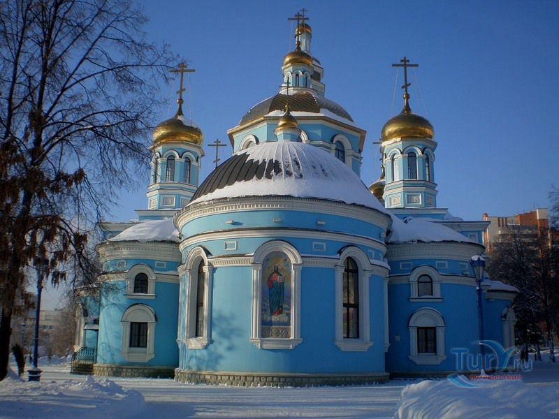 Кафедральный собор Рождества Пресвятой Богородицы по праву носит звание одного из самых красивых и впечатляющих храмов Уфы. Он также является и самым большим и вместительным храмом города. Его высокие златоглавые купола имеют высоту 21 метр, а многоярусная колокольня - 47 метров. Внутреннее убранство храма довольно яркое и богатое. Стены украшены росписями мастеров с изображением лика святых и библейских сюжетов. Мозаичный пол сложен из нескольких видов мрамора: розовый итальянский, белый греческий и желтый пакистанский мрамор; зеленые плитки мозаики - итальянский серпентинит, серо-голубые - южноафриканский гранит.