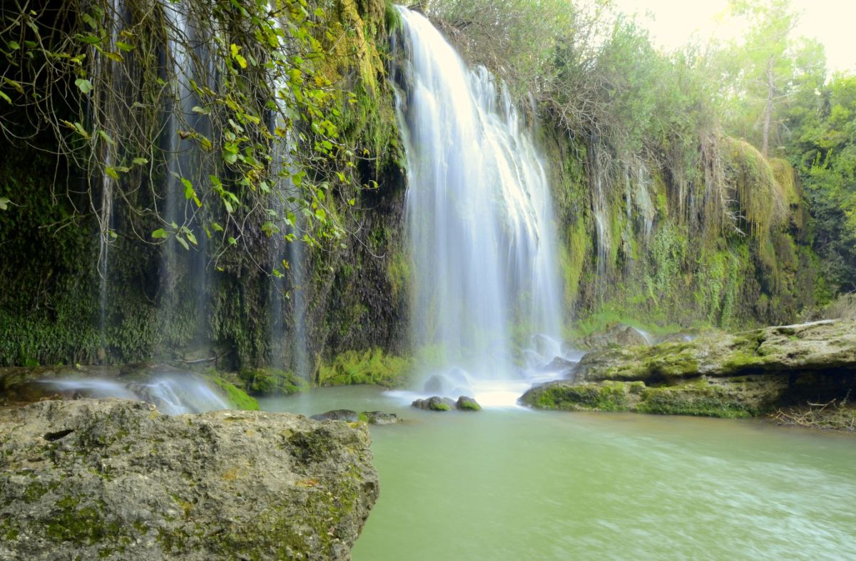 Водопад в природном парке Куршунлу – это только начало пути. Если вы действительно хотите оценить всю первозданность данного парка, отправляйтесь вниз по реке. Вдоль нее есть узкие тропинки для прогулок, которые совсем не выглядят протоптанными, скорее, дикими. В пятистах метрах от водопада вас ждет, цепляющее до глубины души место, в которое хочется возвращаться снова и снова. Это прекрасная голубая лагуна, небольшой водопад и милый домик на берегу, скрывающийся в листве.