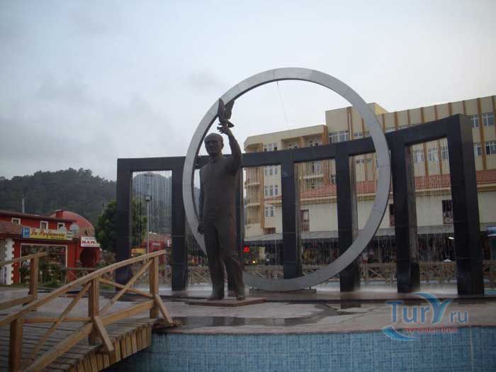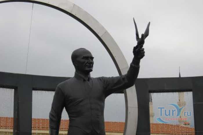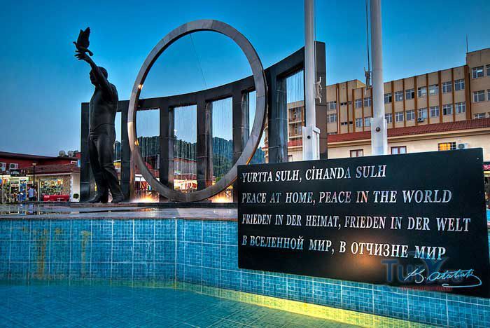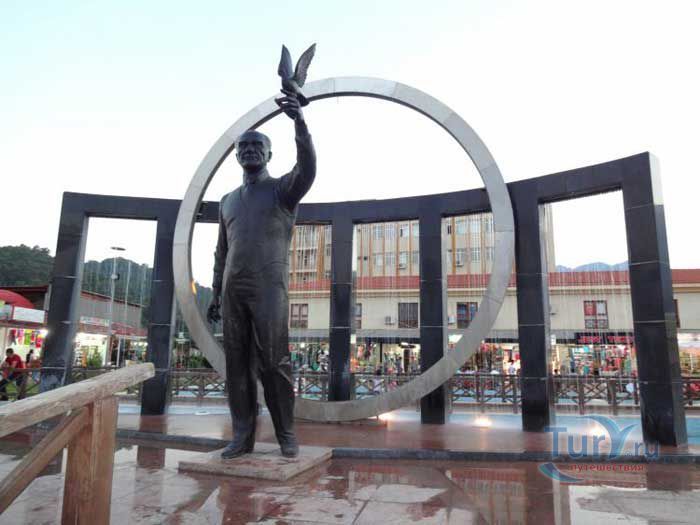 В каждом большом и маленьком городке Турции есть памятник, музей или бульвар названные в честь Мустафы Кемаля Ататюрка - основателя современного турецкого государства. Главной улицей Кемера является бульвар Ататюрка, на котором воздвигнут памятник Мустафе Кемалю. Он изображен здесь выпускающим в небо белого голубя мира. Этим действием он как бы хочет сказать: «Я выступаю за жизнь против смерти, я выступаю за мир против войны». В международной политике слово “голубь” стало общепринятым названием-синонимом для выражения согласия и компромисса, для решений возникающих проблем мирным путем. Всем известно, что выдающийся политик Ататюрк благодаря своим реформам превратил Турецкую республику в современное светское национальное государство. Именно поэтому турецкий народ помнит и чтит своего первого президента.