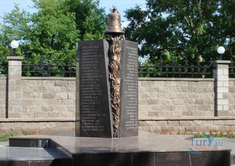 Автором памятника стал Ханиф Хабибрахманов, к числу работам которого принадлежат памятник Салавату Юлаеву около Курултая Республики Башкортостан и памятник Загиру Исмагилову. Памятник пожарным, погибшим при исполнении служебного долга, представляет собой гранитную стелу, в центре которой установлен медный пожарный колокол и поднимающиеся к нему языки пламени. На камне высечены имена всех 47 погибших пожарных. Рядом на гранитных плитах на русском и башкирском языках запечатлены слова: "ВЕЧНАЯ ПАМЯТЬ ПОГИБШИМ ПОЖАРНЫМ ПРИ ИСПОЛНЕНИИ СЛУЖЕБНОГО ДОЛГА".