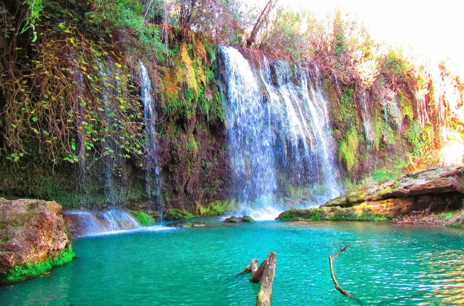 Водопад Куршунлу в Анталье - удивительное место, где можно насладиться чарующей красотой дикой нетронутой природы. Водопад со всех сторон окружен кустарниками и деревьями, которые создают загадочность и мистичность. Территория возле водопада Куршунлу украшена мостиками, ступеньками и выложенными из камешков тропинками. Это настоящий сказочный мир с естественной красотой, где можно насладиться природной идиллией. Кристально чистые воды водопада, стекая с высоты, образуют озеро Нилуфер с необыкновенно красивым зеленовато-бирюзовым цветом воды. Окрестность водопада Куршунлу - это одно из самых удивительных мест для отдыха и наслаждения природой даже в самую жаркую и знойную погоду. Здесь можно часами проводить время, наслаждаясь чистейшим свежим воздухом и прохладой, которую дарит водопад,