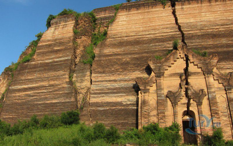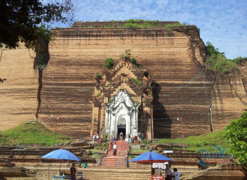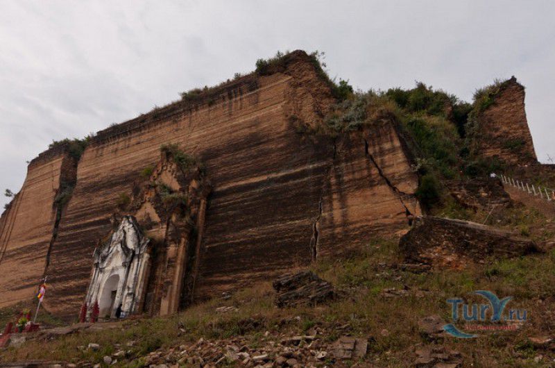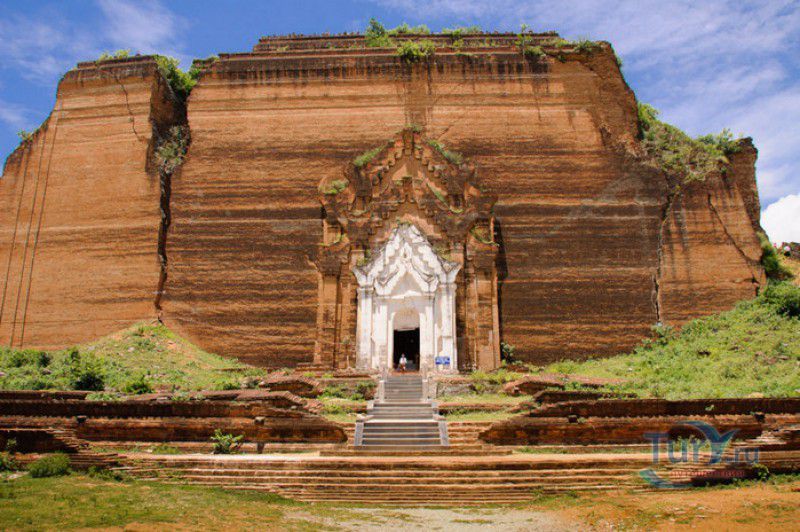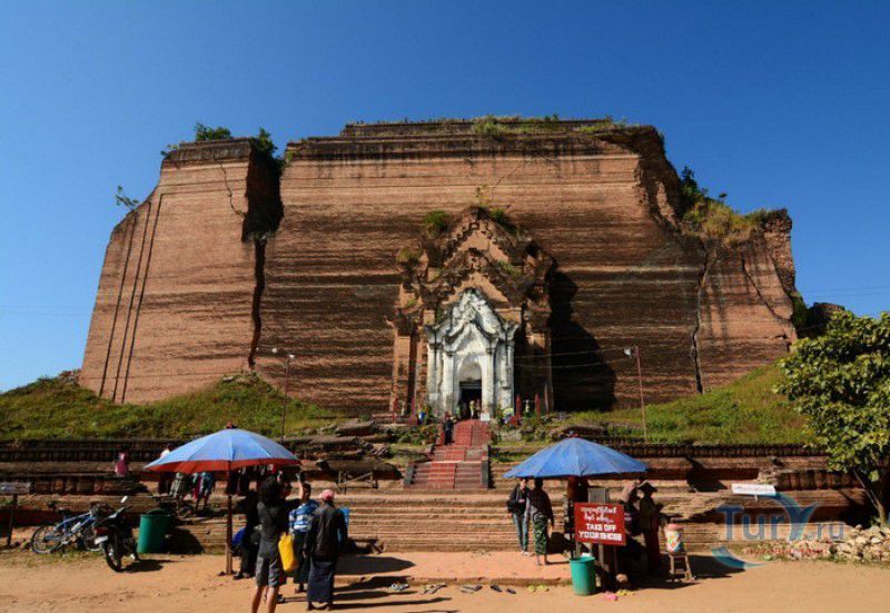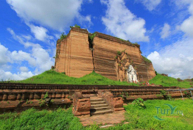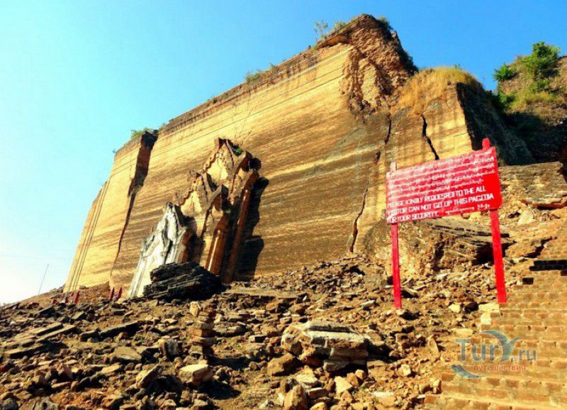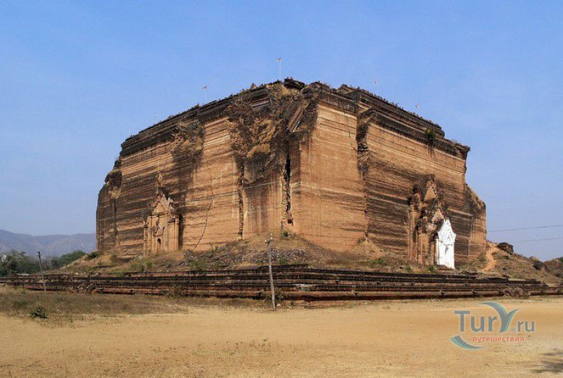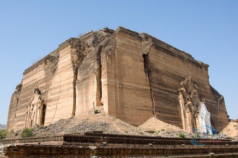 Ступа Мингун Пайя - крупнейшая в мире незавершённая ступа, расположена в центральной части Мяьнмы, на левом берегу реки Иравади, в городе Мингун, в 11 километрах к северо-западу от города Мандалай. Строительство ступы начал король Бодапайя в 1791 году, первоначально планировалось, что высота Мингун Пайя будет равна 150 метрам. Правитель рассчитывал построить крупнейшую в мире ступу и, таким образом, увековечить своё имя. Бодапайя лично выбрал для неё место на берегу реки Иравади, на строительство согнали тысячи военнопленных и местных жителей, средства собирали по всей стране - народ обложили дополнительными пошлинами. Монарх приказал организовать для себя наблюдательный пункт, чтобы лично контролировать строительство храма. К 1813 году, когда стройка прекратилась, ступа имела высоту 49 метров. По одной версии, работы были прекращены из-за предсказания астрологов, что как только ступа будет построена, король умрёт, по другой - из-за нехватки средств. Тем не менее, ступа Мингун Пайя таки "увековечила" короля - в народе её стали называть Bodawpaya's Folly (Глупость Бодапайя). После смерти монарха в 1819 году работы так и не возобновились, а землетрясение 1839 года нанесло значительные повреждения недостроенному сооружению - по всему фасаду пошли огромные трещины. С четырёх сторон ступы были заложены входы, так никогда и не открывшие доступ в святилище, в одном из них уже в наши дни была оборудована ниша и установлена статуя Будды. К вершине Мингун Пайя ведёт каменная лестница из 174 ступеней, из-за аварийности объекта у её подножия установлена табличка, предупреждающая об опасности и информирующая, что подъём на ступу запрещён. Даже недостроенная Мингун Пайя поражает своим размерами, а увидеть как должна была бы выглядеть самая большая в мире ступа можно, посмотрев на её уменьшенную модель - Pondaw Paya, расположенную рядом с оригиналом.