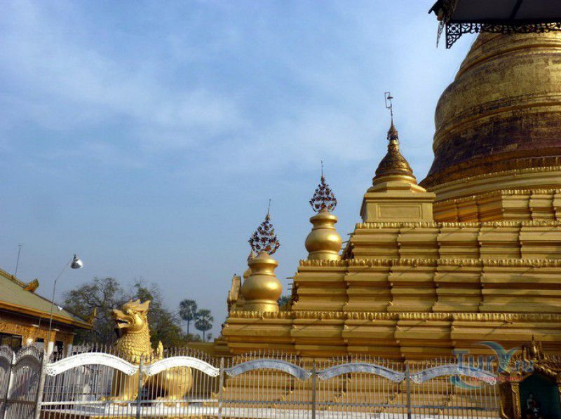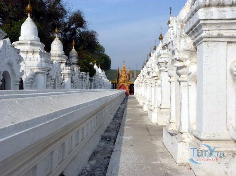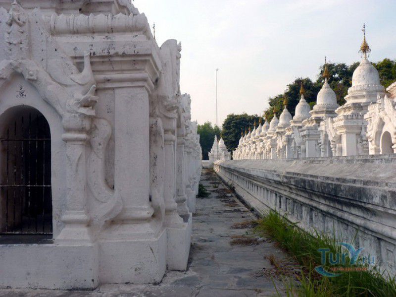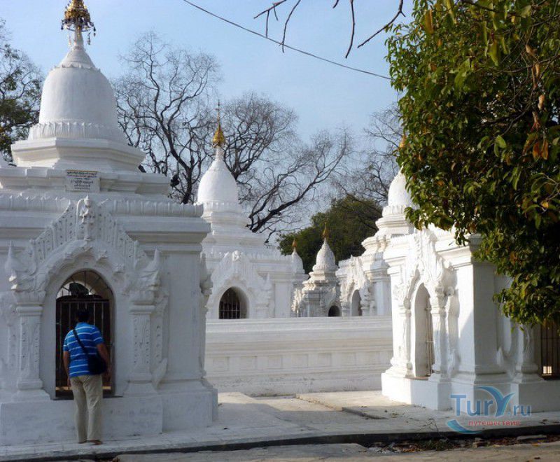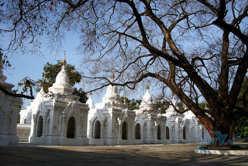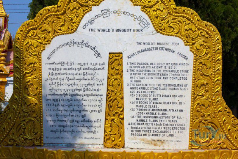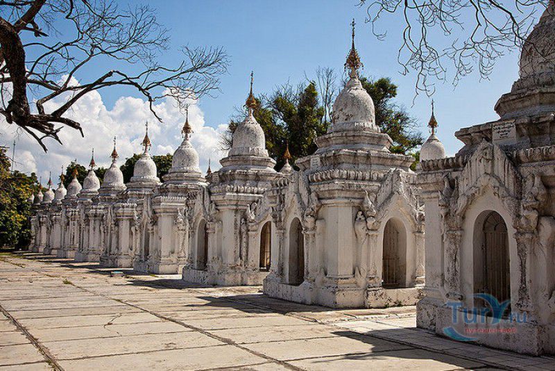Пагода Кутодав расположена в Мьянме, в городе Мандалай, у подножия холма Мандалай. Пагода была построена в 1860-1868 годах, во время правления короля Миндона. Монарх пожелал увековечить в мраморе свод буддийских трактатов школы Тхеравада и оставить потомкам бесценную реликвию - вырезанную в камне книгу Типитака, написанную на палийском языке. Текст канона был проверен и утверждён Пятым буддийским синодом, который специально для этого собрался в Мандалае, в работе синода приняли участие 2400 буддистских монахов со всей страны. Структура комплекса соответствует классической схеме бирманского храмового комплекса - ступа в центре, просторный внутренний двор и четыре входа, ориентированных по сторонам света. Центральное сооружение комплекса - 57-метровая ступа, покрытая позолотой. Вокруг неё, на площади 13 акров, ровными рядами расположены 729 белоснежных храмов, в каждом из которых размещена мраморная стела с выбитым на ней текстом из Типитаки. Мрамор добывали в горной местности Sagyin Hill, расположенной к северо-востоку от Мандалая, а затем по реке доставляли в столицу. Каждая из плит имеет высоту 1,5 метра, ширину 1,1 метра и толщину 13-15 сантиметров. Если разложить все стелы горизонтально, то они бы заняли площадь 1000 квадратных метров. К работе по нанесению текста на мраморные плиты были привлечены 50 лучших в стране резчиков по камню. За день один резчик высекал 10 строк, при этом только одна сторона стелы содержит около 100 строк, а текст высечен с обеих сторон плиты. Выбитые в мраморе строки заполнялись специальными чернилами, изготовленными с добавлением сусального золота. В верхней части каждой стелы, в углублении, лежал драгоценный камень. 111 стел занял текст Виная-питака (буддийский дисциплинарный устав), 208 плит посвящены Абхидгамма-питаке (буддийская метафизика), на 410 стелах высечена Сутита-питака (проповеди Будды). Типитака, написанная на 729 каменных "страницах" считается самой большой книгой в мире. В 1900 году её текст был напечатан на бумаге - получилось 38 томов по 400 страниц каждый. Во время оккупации Мьянмы британскими колониальными войсками пагода Кутодав была разграблена. Были похищены золотые и серебряные колокольчики, статуи, драгоценные камни, итальянский мрамор с террас, исчезли даже золотые чернила с мраморных плит. К счастью, сами стелы не пострадали. Восстановительные работы были начаты в 1892 году. Средства на реконструкцию пагоды Кутодав поступали в виде пожертвований из монастырей, от членов королевской семьи и высших офицерских чинов, ремесленников и простых людей. Работы были завершены в 1932 году, пагода Кутодав восстановлена в своём первозданном виде, лишь золотые чернила на плитах заменены на обычные - чёрного цвета.
