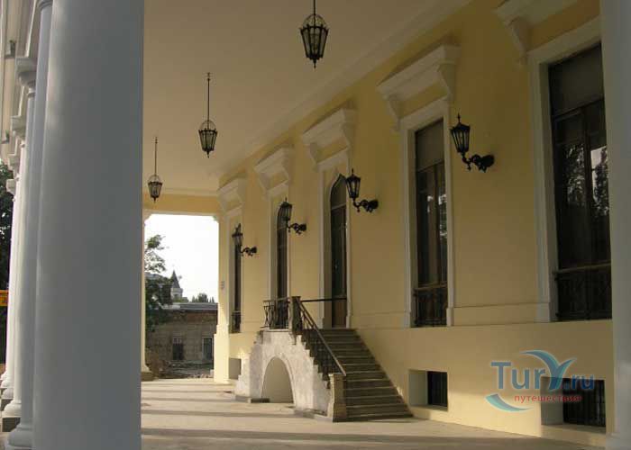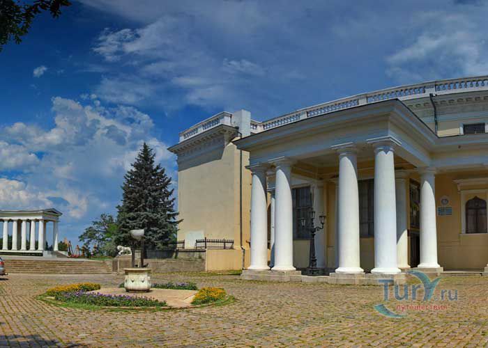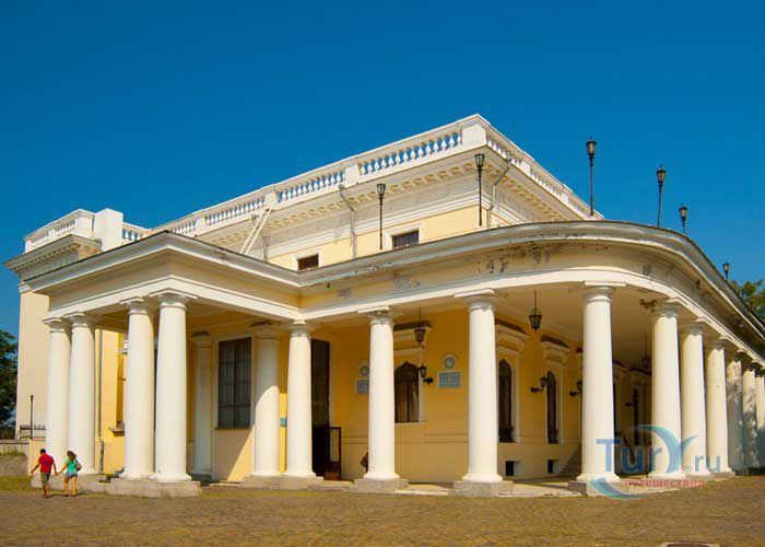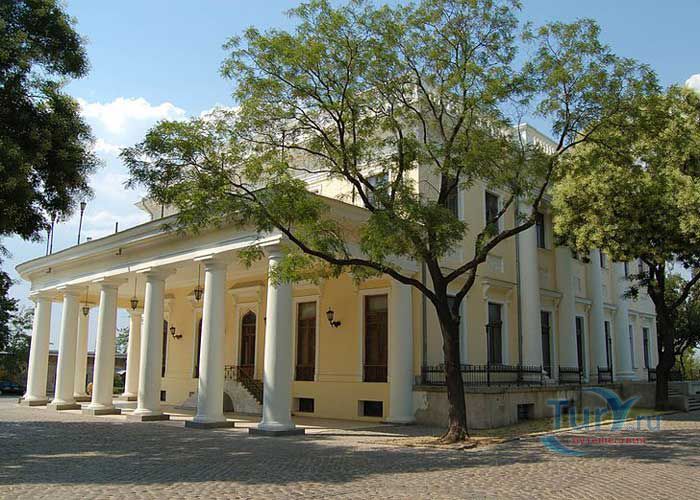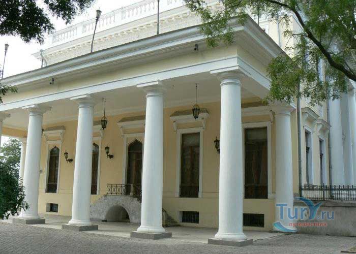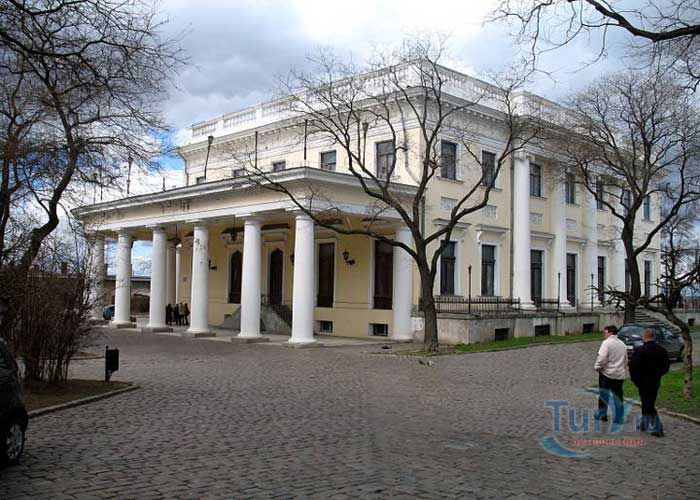 Дворец генерал-губернатора Новороссийского края М. Воронцова в Одессе был построен в 1827 году по проекту и под руководством архитектора Франса Боффо. Дворец расположен на самом северном краю приморского холма, в месте, где когда-то была расположена турецкая крепость Хаджибей. Что любопытно, под дворцом сохранились подземелья, по всей вероятности, бывшие когда-то частью крепости. В роскошных интерьерах, оформленных знаменитым скульптором и живописцем Карлом Скотти, использованы приёмы романтизма. Интерьеры дворца представляют собой лучшие образцы сохранившихся интерьеров Одессы эпохи ампира. Парадные комнаты первого этажа включают переднюю, бильярдную, полуциркульную столовую c обширной открытой террасой, с которой открывается прекрасный вид на Одесский залив, библиотеку, комнату манускриптов, китайский кабинет графини Е.К. Воронцовой, турецкую комнату. Турецкая комната самая элегантная, имеет высокий потолок в готическом стиле, решённый в светло-зелёных тонах с большим количеством пышной позолоты. Второй этаж дворца, на котором находились жилые комнаты, оформлен просто и без декоративных излишеств. Рядом с дворцом находится Колоннада бельведера, которая считается одним из символов Одессы.