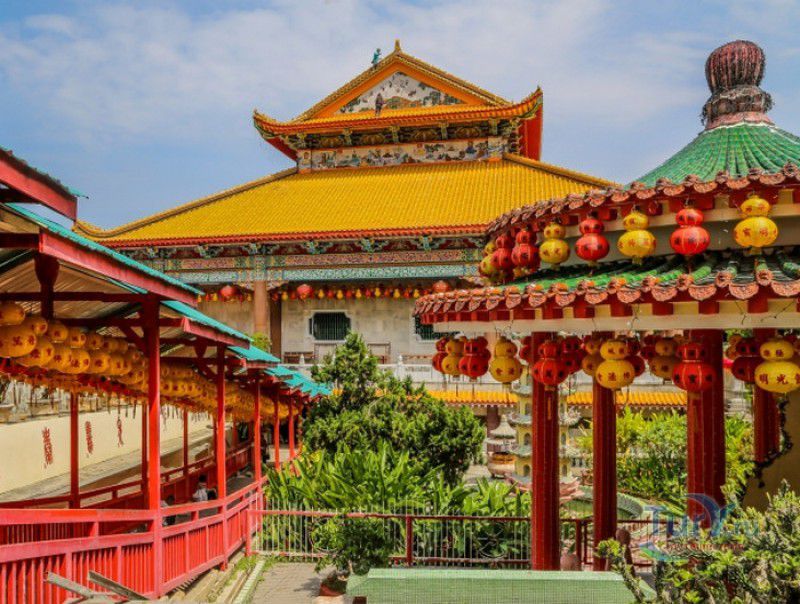 Храм Кек Лок Си расположен в Малайзии, в центре острова Пенанг, в городе Эйр Итам, в 7,5 километрах от города Джорджтаун. Кек Лок Си - один из крупнейших и красивейших буддистских храмовых комплексов в Юго-Восточной Азии. Его история связана с именем буддистского монаха Пиав Лина, прибывшего в 1855 году из Китая в Пенанг для сбора пожертвований. Именно ему принадлежит идея строительства буддистского храма на высоком холме, расположенном в центре острова. В 1891 году был построен первый храм - Зал бодхисаттв, на протяжении последующих 20 лет храм Кек Лок Си постоянно достраивался и расширялся. На сегодняшний день комплекс состоит из нескольких монастырей, молитвенных залов, храмов, пагод и ландшафтных садов, расположенных на площади 12 гектаров. Архитектура храма сочетает в себе китайский, тайский и бирманский стили - восьмиугольное основание "визитной карточки" храма - пагоды Миллиона Будд напоминает китайскую пагоду, средняя её часть выполнена в традициях тайской архитектуры, верхняя часть, со спиралевидным куполом, построена по подобию бирманского святилища. Перед храмом Кек Лок Си расположена площадь для молитв, по бокам - молитвенные залы и пагоды с множеством скульптур Будды, статуями Небесных королей и бодхисаттв. У входа в храм находится пруд Освобождения, в котором живут сотни черепах, посетители могут покормить священных животных, тем самым, по китайскому поверью, прибавив себе несколько лет жизни. Помимо Зала бодхисаттв, в храме есть зал Дэв, зал Махавира, зал Будд пяти регионов, Главный молельный храм, 7-этажная пагода Миллиона Будд или пагода Рамы VI. Их экстерьер и интерьер богато украшены резьбой, скульптурами и фресками. В 2002 году на вершине холма была установлена 30-метровая бронзовая статуя Гуань Инь - богини милосердия и материнства (чтобы подняться к статуе, можно воспользоваться фуникулёром). На верхнем уровне Кек Лок Си расположены пруд с рыбками, пышный сад и статуи 12 животных, символизирующих знаки китайского зодиака. В храме Кек Лок Си хранятся буддистские реликвии и святыни - 7000 томов имперских изданий буддистских сутр, подаренных храму китайским императором Куанг Си, каллиграфии и рукописные скрипты, выполненные императором Куанг Си и императрицей Цыси из династии Цин. Храм является центром фестивалей китайской общины острова Пенанг. Особенно впечатляет празднование китайского Нового года - в течение 33 дней храм открыт до поздней ночи, с наступлением темноты в нём зажигаются тысячи фонарей, буквально "заливая" огнями весь холм, на котором стоит Кек Лок Си.