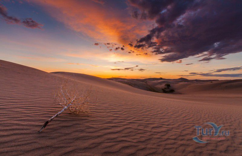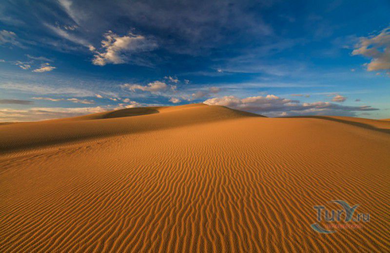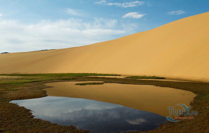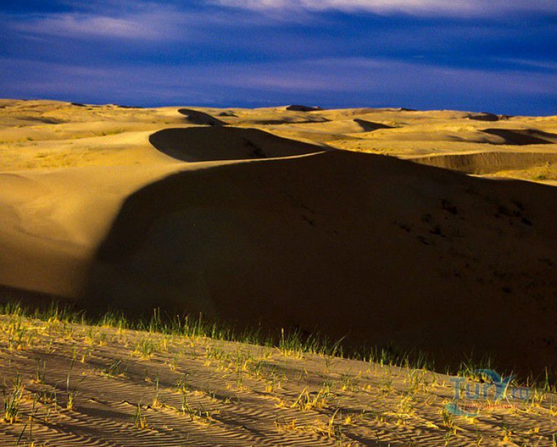 Песчаный Массив Монгол Элс расположен в западной части Монголии, в провинциях Говь-Алтай и Завхан. Пески Монгол Элс покрывают большую территорию, они берут начало у восточного берега солёного озера Дурген-Нуур и тянутся почти на 300 километров с юго-востока на северо-запад вдоль русла реки Завхан. Площадь одного из самых крупных песчаных массивов Монголии - 2724 квадратных километра, средняя ширина - 25-30 километров. Внутренние районы песчаного массива из-за своей труднодоступности являются естественным заповедником-резерватом, где до сих пор встречаются дикие двугорбые верблюды, популяция которых в последнее время стремительно сокращается. Огромные песчаные дюны имеют заострённые верхушки конической формы, склоны песчаных насыпей напоминают безбрежное песчаное море, "волны" которого под воздействием ветра постоянно меняют своё направление и форму. На северо-западной оконечности Монгол Элс, в излучине реки Завхан, расположены небольшие озёра Эрээн-Нуур и Дуруу-Нуур, берега которых покрыты густыми зарослями тамариска. Добраться в Монгол Элс можно только на внедорожнике, большинство участков песчаного массива непроходимы для транспортных средств, но туристы едут в Монгол Элс, чтобы увидеть безбрежные золотые пески на фоне бирюзового неба, невероятно красивые закаты и ощутить покой и величие этих мест.