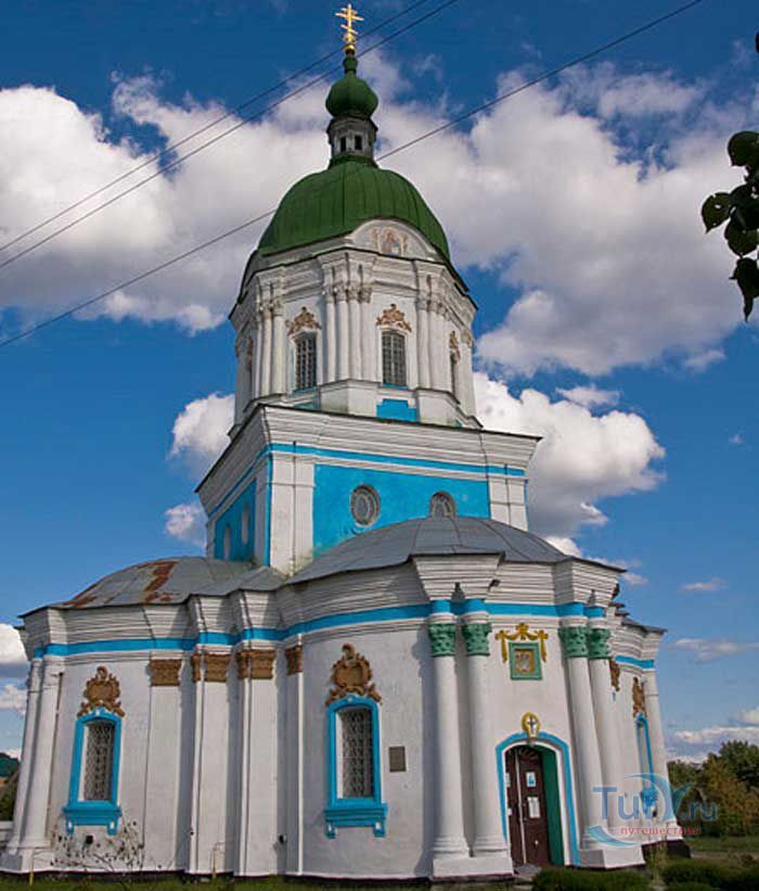 Троицкая церковь в Диканьке была построена в 1780 году в стиле позднего барокко. Рисунки и фрески, к сожалению, до наших дней не сохранились, зато предания и легенды окутывающие церковь пеленой таинственности и неизвестности остались. Этот памятник архитектуры тесно связан с творчеством Н.В. Гоголя, который часто бывал в ней. Троицкая церковь в стиле позднего барокко построена в Диканьке на месте старого деревянного храма. Строительство начато в 1780 году под руководством архитектора Орлова на средства П. Кочубея. Храм имеет в плане форму креста. Округлые углы оформлены пилястрами и прямоугольными колонами, стены с большим количеством лепных украшений завершаются высокими карнизами. По композиции это однокупольная церковь с четырьмя полукуполами. Она выделяется утонченным декором, в здании чувствуется глубоко продуманная пропорциональность. Оригинальной особенностью в то время был вымощенный чугунными плитами пол, под которым открывались потайные ходы в Диканьские подземелья и в склеп, где позднее был похоронен меценат строительства церкви П.В. Кочубей и его жена Ульяна Безбородько - сестра всесильного фаворита Екатерины II графа Александра Андреевича Безбородко.