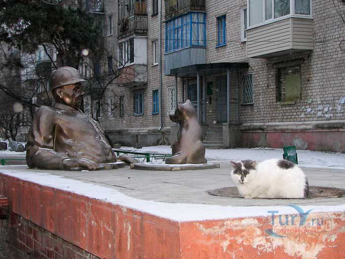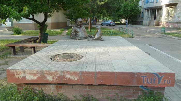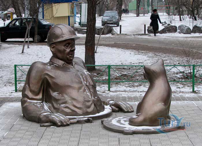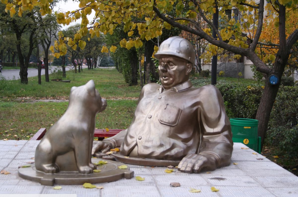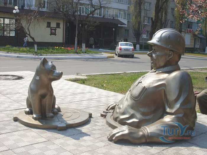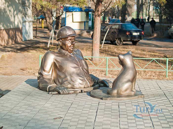 Памятник сантехнику в Горишних Плавнях Полтавской области был установлен в 2005 году. Скульптурная композиция изображает вылезшего по пояс из люка сантехника с разводным ключом в руке, который удивленно смотрит на щенка, сидящего на крышке люка. Автором памятника является скульптор О. Рябо.