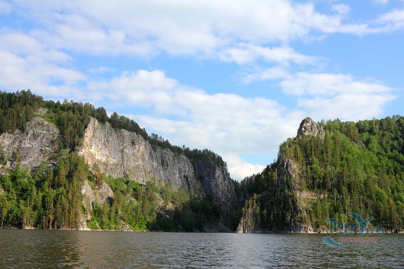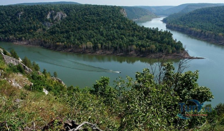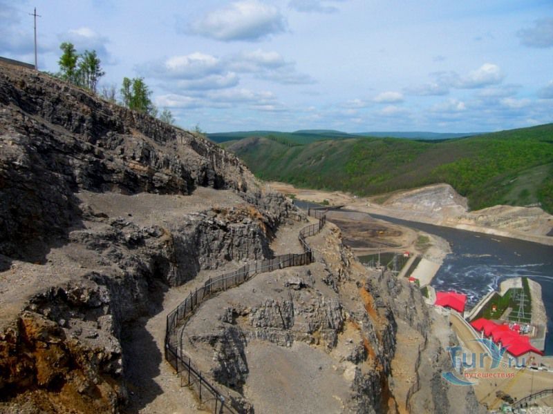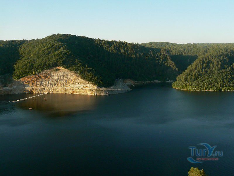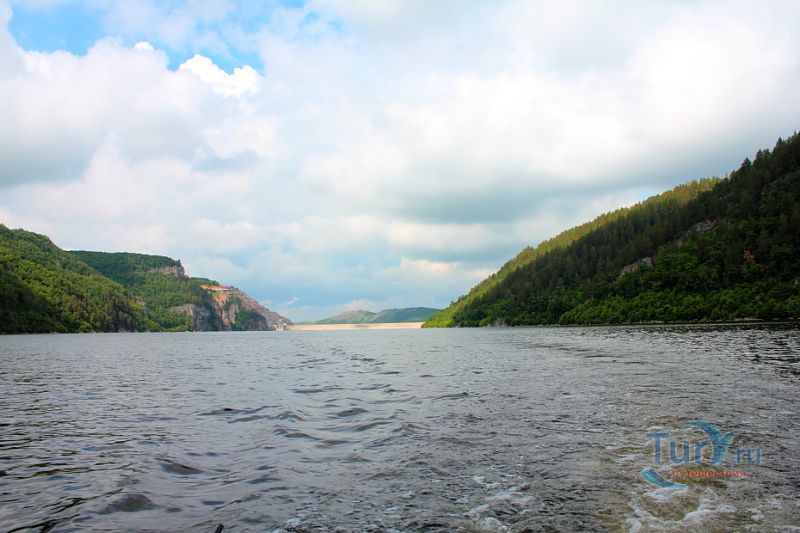 Юмагузинское водохранилище находится на территории Национального парка Башкирия, в верховьях реки Белая. Водохранилище протяженностью 57 километров растянулось в пределах Кугарчинского района республики. История Юмагузинского водохранилища началась в 1998 году со строительства гидроэлектростанции в узком горном каньоне реки Белая. Она стала одним из самых спорных гидротехнических сооружений, построенных в республике. Строительство сопровождалось протестами местных жителей и экологов, коррупционными скандалами. В 2003 году началось заполнение водохранилища, в результате чего многие природные достопримечательности оказались затопленными, например, пещера-пропасть Сумган-Кутук. Под затопление попала часть когда-то общесоюзного сплавного маршрута по реке Белой. В 2007 году строительство инженерного сооружения было полностью закончено. Плотина Юмагузинской ГЭС имеет длину 605 метров и высоту 65 метров. Средняя глубина водохранилища - 26 метров, а максимальная - 63 метра. Средняя ширина составляет 300 - 400 метров. К счастью, несмотря на все разногласия, водохранилище остается одним из самых красивых мест Башкортостана. Его узкая горная долина практически на всем протяжении с обеих сторон окружена высокими и очень красивыми скалами причудливой формы с не менее интересными названиями: "Митрошкин камень", "Азан-Таш", "Сундук-Таш", "Крейсер" и другие. Самая необычная скала - "Чертов Палец". Она представляет собой вертикальный каменный столбец, отделенный от скалы, по своим очертаниям напоминающий палец. В скале "Крейсер" находится пещера "Театральная". Во время плавания также можно увидеть скалу "Вождей" или "Классиков". В 1979 - 80 годах местные художники Татьяна и Булат Каримовы нарисовали на ней Ленина, Маркса и Энгельса. К числу наиболее интересных мест водохранилища также можно отнести и остров Сакасска. Это гора, которая в результате наполнения водохранилища, была окружена водой и превратилась в остров. Отсюда можно попасть в знаменитый Сумган-Кутукский карстовый район, богатый многочисленными пещерами.