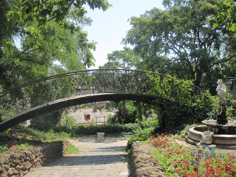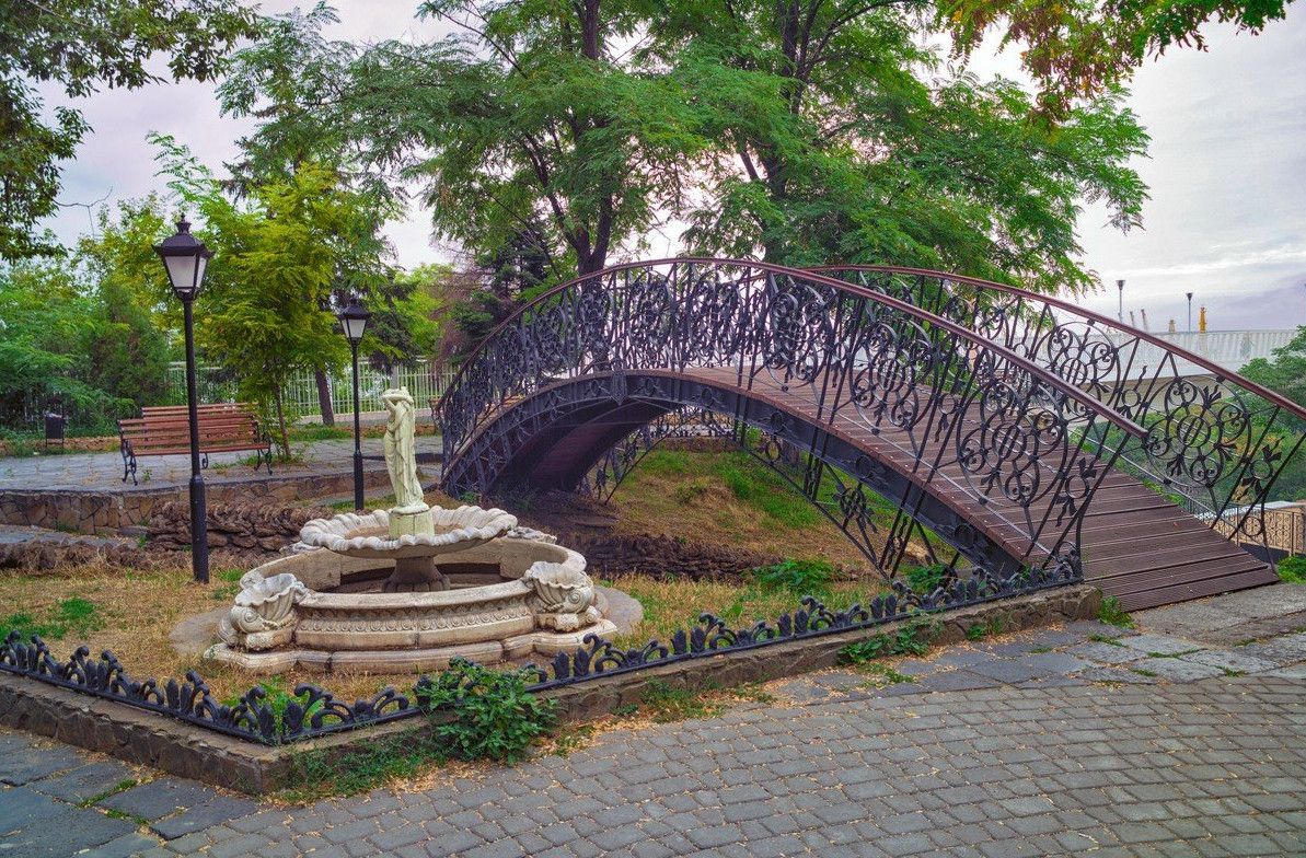 В "Уголке старой Одессы" расположили мост, который своей изысканностью отражает тонкую романтику и нежность архитектуры Одессы середины XIX века. Но у него есть еще и другое предназначение, кроме внешней красоты и создания общей атмосферы "Уголка". Этот мостик носит тайное название "Мост невест". Есть поверье, что если незамужняя девушка перейдёт по мосту с левого конца на правый, то обязательно в ближайшее время выйдет замуж! Скажу Вам честно, побегать по мостику любят и замужние дамы с преступной целью сменить "свою лучшую половину" на "просто новую половину". Судя по возрастающему количеству разводов и новых браков в городе любви-Одессе, этот метод работает! :) Не упустите и Вы уникальную возможность! ;) Ещё был забавный случай... Пришли мы с группой в "Уголок", я говорю о его истории, колодце, беседке, почти перешла к мостику, как вижу, что два мужчины уже на него взобрались и правильно так, слева направо его переходят. А я в этот момент закончила рассказывать легенду. Вся группа начинает громко смеяться и вкратце им пересказывает суть. Мужчины в шоке, смотрят друг на и друга и задают мне вопрос на твёрдую пятёрку: "И кто из нас теперь на ком должен жениться, кто из нас невеста?" Ребята, если вы это читаете, помните: вы - лучшие!