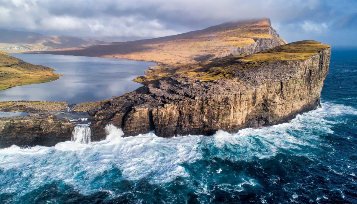Озеро Сорвагсватн (Sørvágsvatn), или как его еще называют, Лейтисватн (Leitisvatn), расположено на самом большом острове Фарерского архипелага – Вагар (Vágar). Путаница в названиях происходит от того, что вблизи озера расположены два населенных пункта, жители которых соперничают за право называть водоем по-своему. Селение Мидвагс (Miðvágs) дало озеру название Лейтисватн, поскольку земли рядом с озером они называют Лейти (Leiti). Городок Сорвагсватн, расположенный чуть дальше от озера, желает, чтобы водоем назывался в честь их города, поскольку он основан значительно раньше Мидвагса. Помимо этих двух названий, существует и третье, которым пользуются те фарерцы, которым неинтересны пустопорожние споры — просто «Озеро» (Vatni). Пока что более официальным названием является все-таки Сорвагсватн, уж так исторически сложилось. Озеро площадью в три с половиной квадратных километра и длиной в шесть километров является самым большим на Фарерских островах. В нем нет нечего примечательного, кроме одной детали – его водная гладь вплотную подходит к океану и как будто нависает над ним. Если взглянуть на верхнюю фотографию, кажется, будто воды Сорвагсватна возвышаются над океаном на сотню метров, хотя это совсем не так – перепад высот составляет всего 30 метров. По крутым утесам вода стекает из озера в океан, образуя одноименный водопад. Во время Второй мировой войны британская армия построила аэродром и станцию для гидросамолетов на берегу озера. Первый самолет английских ВВС приземлился в Сорвагсватне в 1941 году.