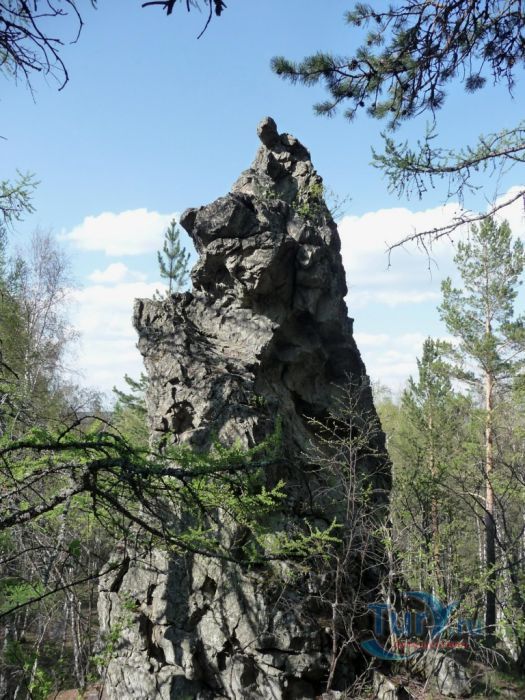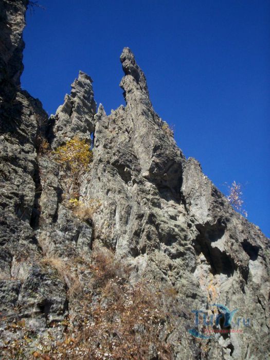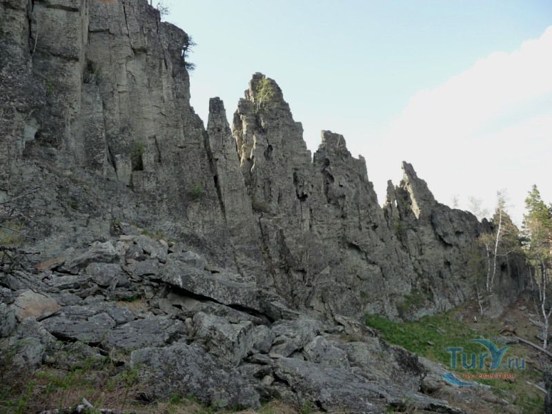 Гора Кульсугадыташ - это отвесные скалы, расположенные посреди леса недалеко от трассы Р-316 "Стерлитамак - Белорецк - Магнитогорск". С самой дороги видно, как над макушками деревьев возвышаются зубцы этого скального бастиона. Днем это обычные скалы, но вот при утреннем освещении с западной стороны возникает необычный цветовой эффект - они отливают красивым синим цветом, поэтому их чаще всего называют "Синие скалы". В скалах имеется грот, внутри стоят иконы, кресты и книги. С высоты скал открываются горные пейзажи окрестностей Абзакова и Белорецка. Рядом со скалами протекает речка Кульсугады.