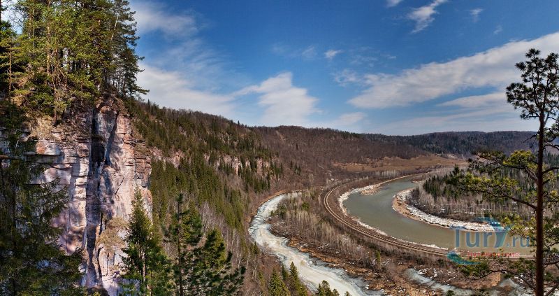 Розовая скала - это одна из главных, наиболее красивых достопримечательностей реки Инзер. У нее имеется еще несколько названий - Кызыл-Таш, Шура-Таш. Она представляет собой скальный массив, поросший соснами и пихтами, на правом берегу реки, между деревнями Ассы и Бриштамак, в том месте, где Инзер закладывает полукруг. Предположительно, что такой удивительный розовый цвет скале придают соли марганца, содержащиеся в ней. Хотя сама скала сложена строматолитовыми известняками. Этот известняк образовали строматолитовые водоросли, которые обитали здесь 2 миллиарда лет тому назад, в Рифейском море, которое когда-то плескалось на месте Уральских гор. И в наши дни на камнях можно обнаружить отпечатки окаменевших водорослей.