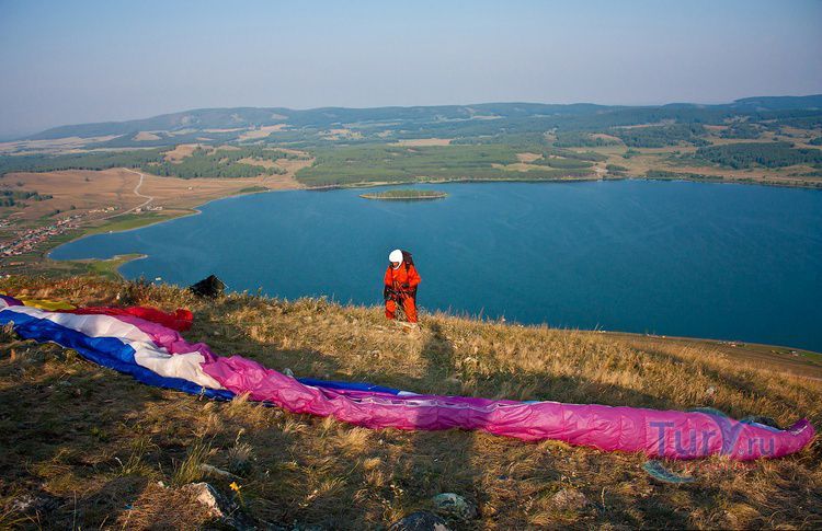 Гору Ауштау облюбовали парапланеристы и дельтапланеристы. Здесь удобная площадка для взлета и безумно красивый вид с высоты птичьего полета. Сама гора находится на высоте 645 метров над уровнем моря, а над гладью озера она возвышается на 230 метров.