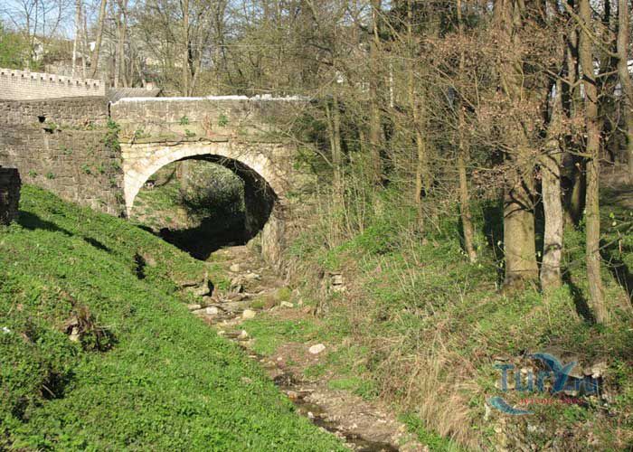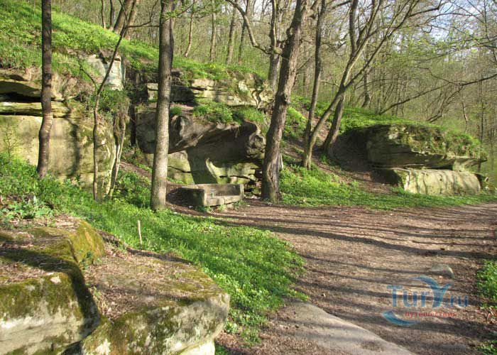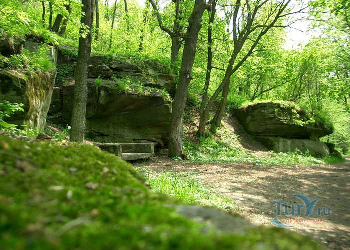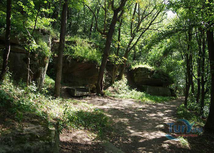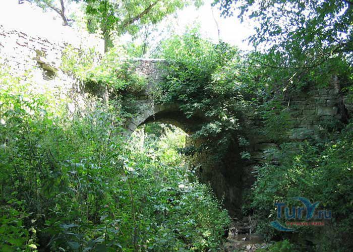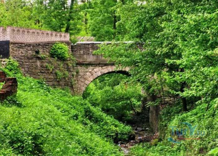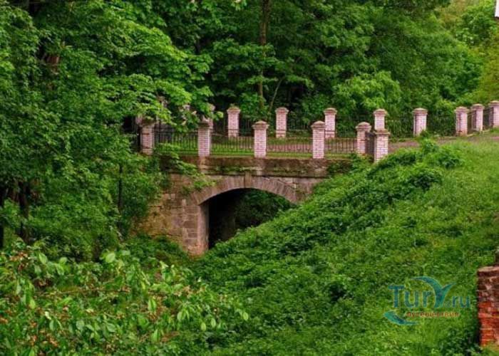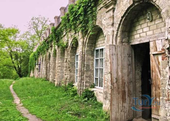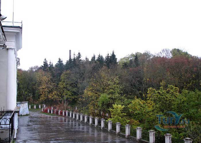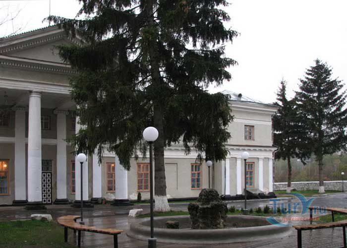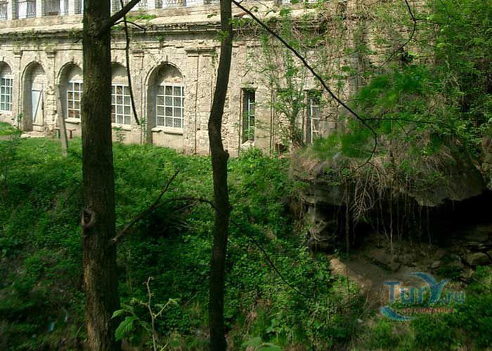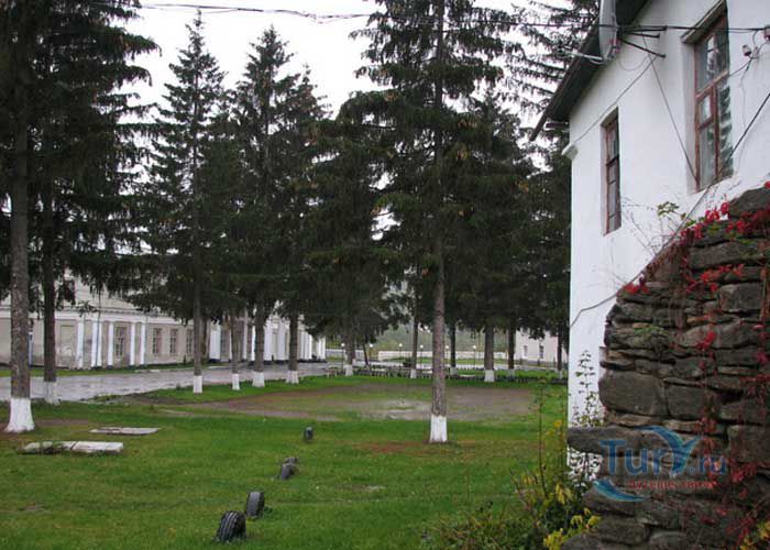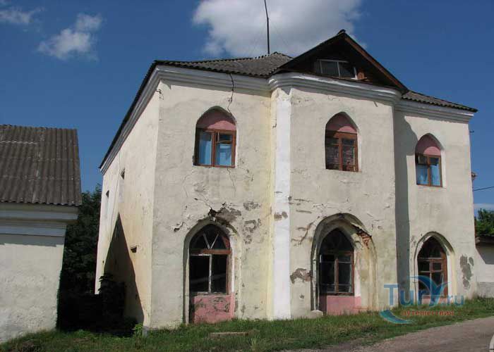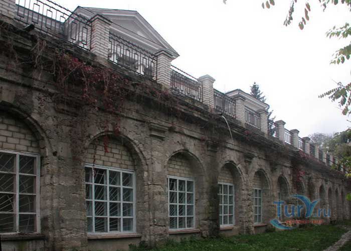 Благодаря резкому перепаду высот с парадной стороны он имел два этажа, со стороны парка - три. Строители не использовали раствор, а для лучшей стыковки камней укладывали их выступлением верхнего в углубление нижнего. Дворец окружает огромный пейзажный парк, который был заложен паркостроителем Дионисием Миклером еще в XVIII веке и располагается на обоих берегах реки Жван. Автор умело использовал ландшафт вокруг дворца с большими природными скалами, в которых проложил аллеи и создал каменные скамьи. Из парковой архитектуры до наших дней дошел каменный мост, созданный в 1805 году одновременно с дворцом. Мост до сих пор эксплуатируется. Частично сохранился пейзажный парк, конюшня, флигель, каменный мост. Сейчас в усадьбе размещена санаторная школа-интернат для детей с заболеваниями сердечно-сосудистой системы.